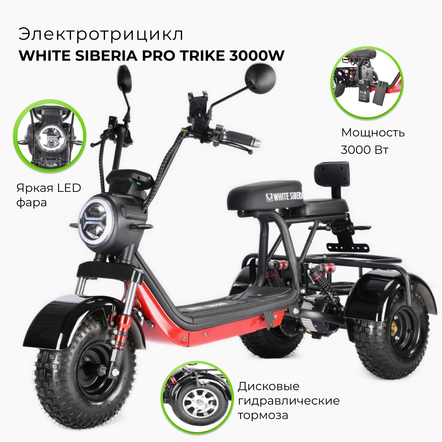 Электроскутер WHITE SIBERIA PRO TRIKE 3000W (Красный)