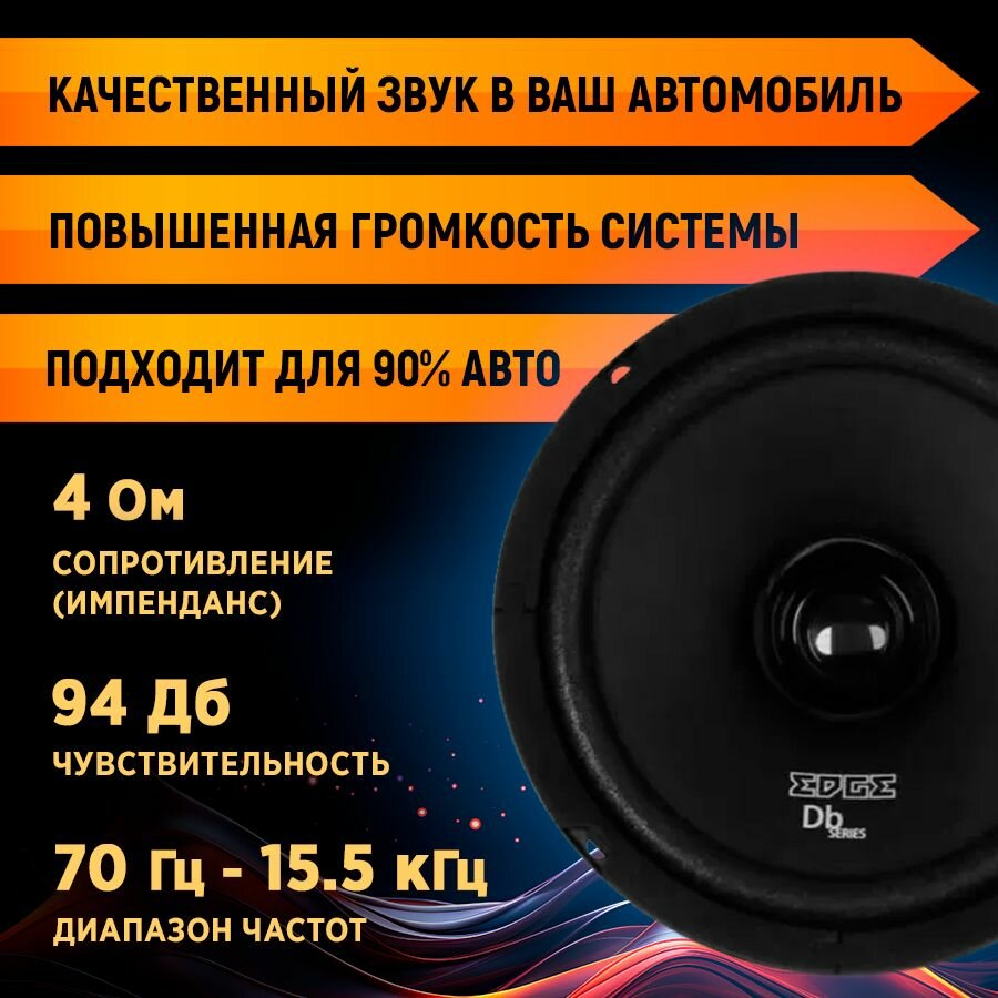 Колонки автомобильные 16 см динамики EDGE EDB6W-E0 (70Вт, 2 динамика) акустика для автомобилей в машину авто автозвук акустическая система автоколонки автоакустика 16,5 16.5