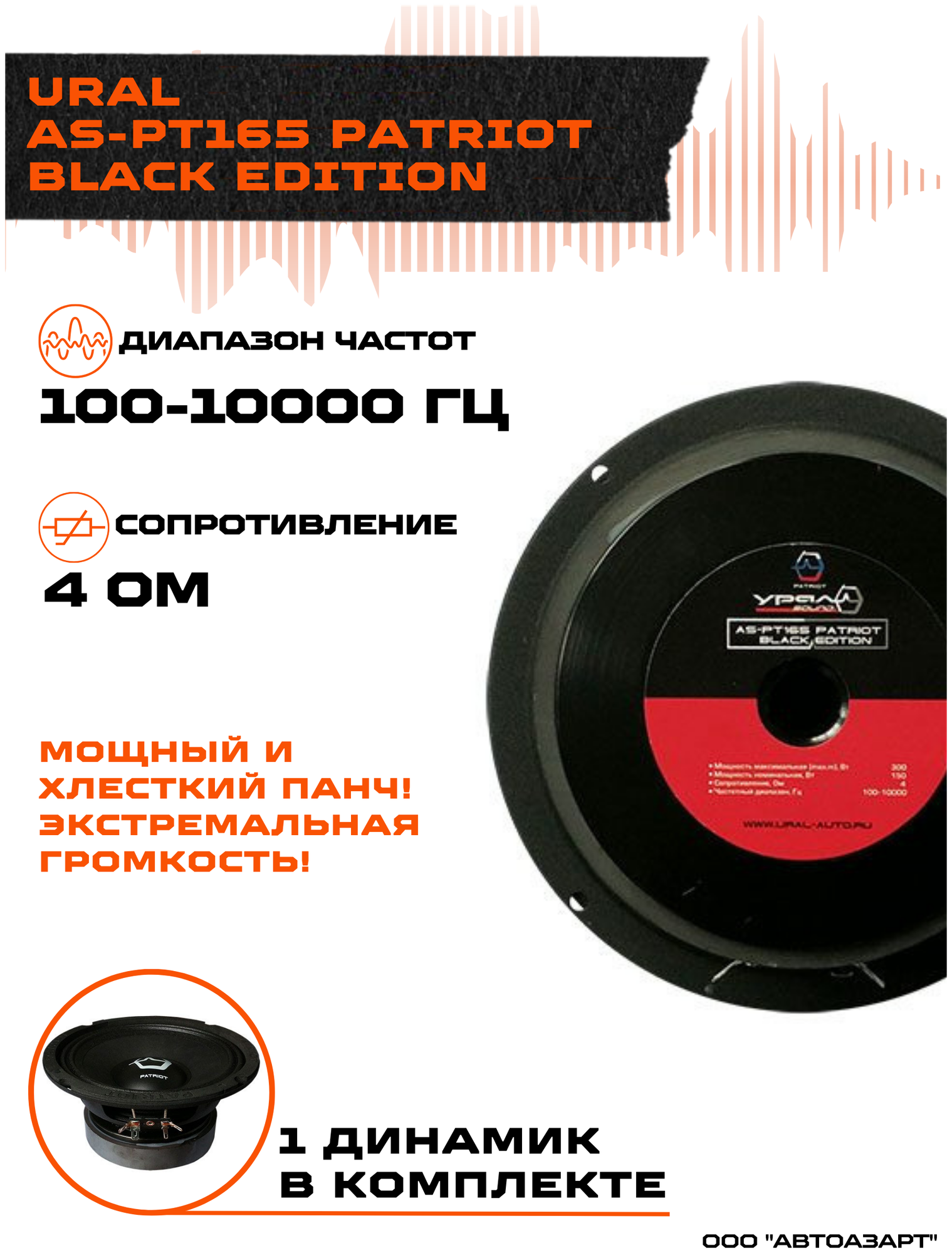 Автоакустика Акустика URAL AS-PT165 PATRIOT BLACK EDITION, Мидрейндж 1 шт