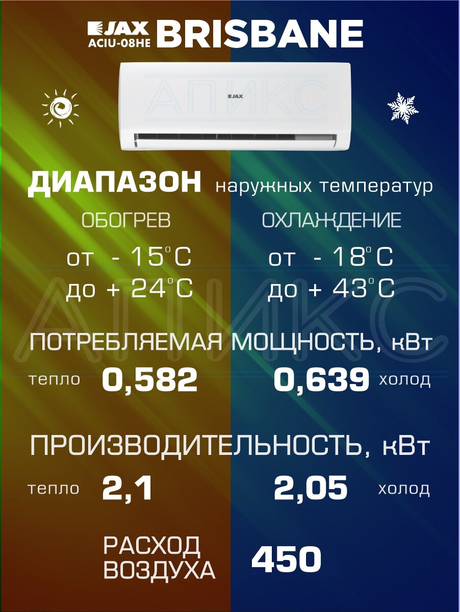 Сплит-система JAX BRISBANE ACIU-08HE Inverter кондиционер для дома и офиса , до 24 м2