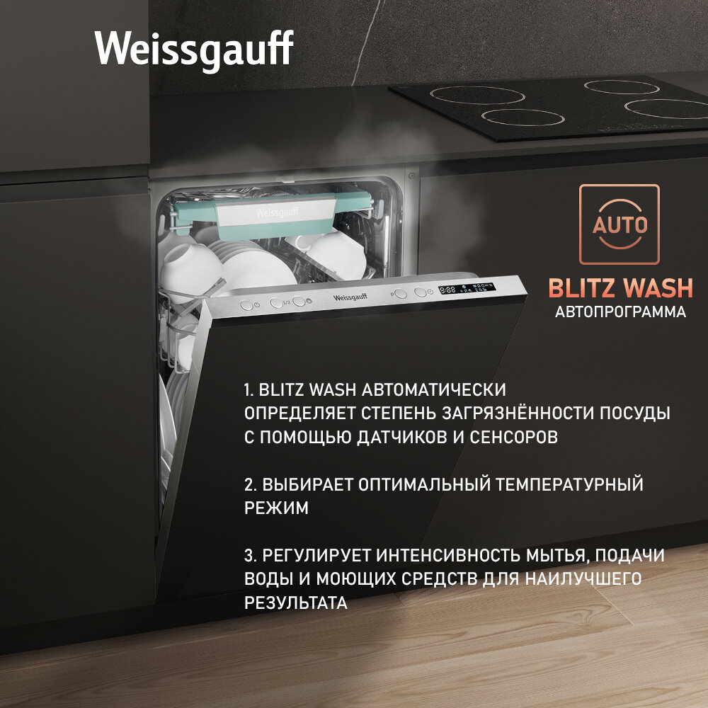 Встраиваемая посудомоечная машина с лучом на полу Weissgauff BDW 4543 D (модификация 2024 года),3 года гарантии, 11 комплектов, 7 программ, полная защита от протечек, автопрограмма Blitz Wash, половинная загрузка, дополнительная сушка 29 390 ₽ Подробнее