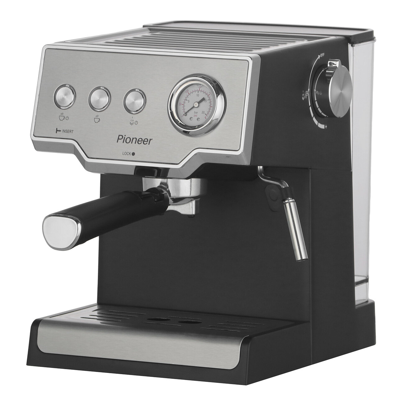 Рожковая кофеварка Pioneer CM112P с итальянской помпой ULKA, встроенным манометром и двойным фильтром, защита от перегрева и протекания, 850 Вт