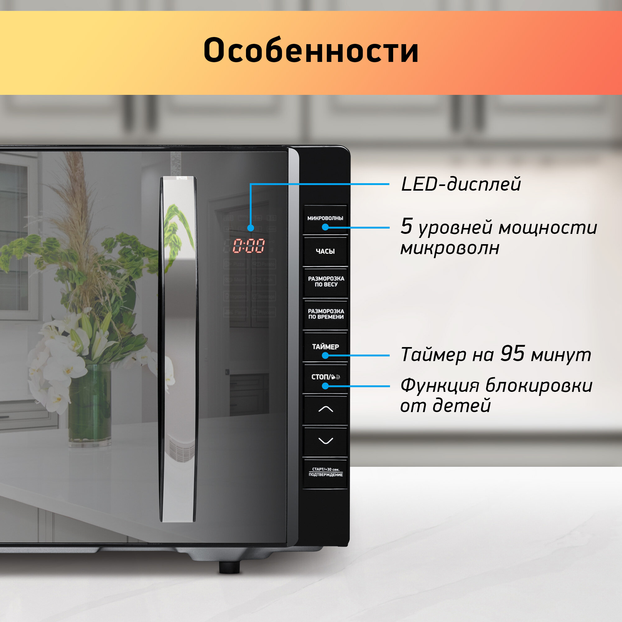Микроволновая печь соло BBK 23MWS-826T/B-M черный, 23 л, 800 Вт