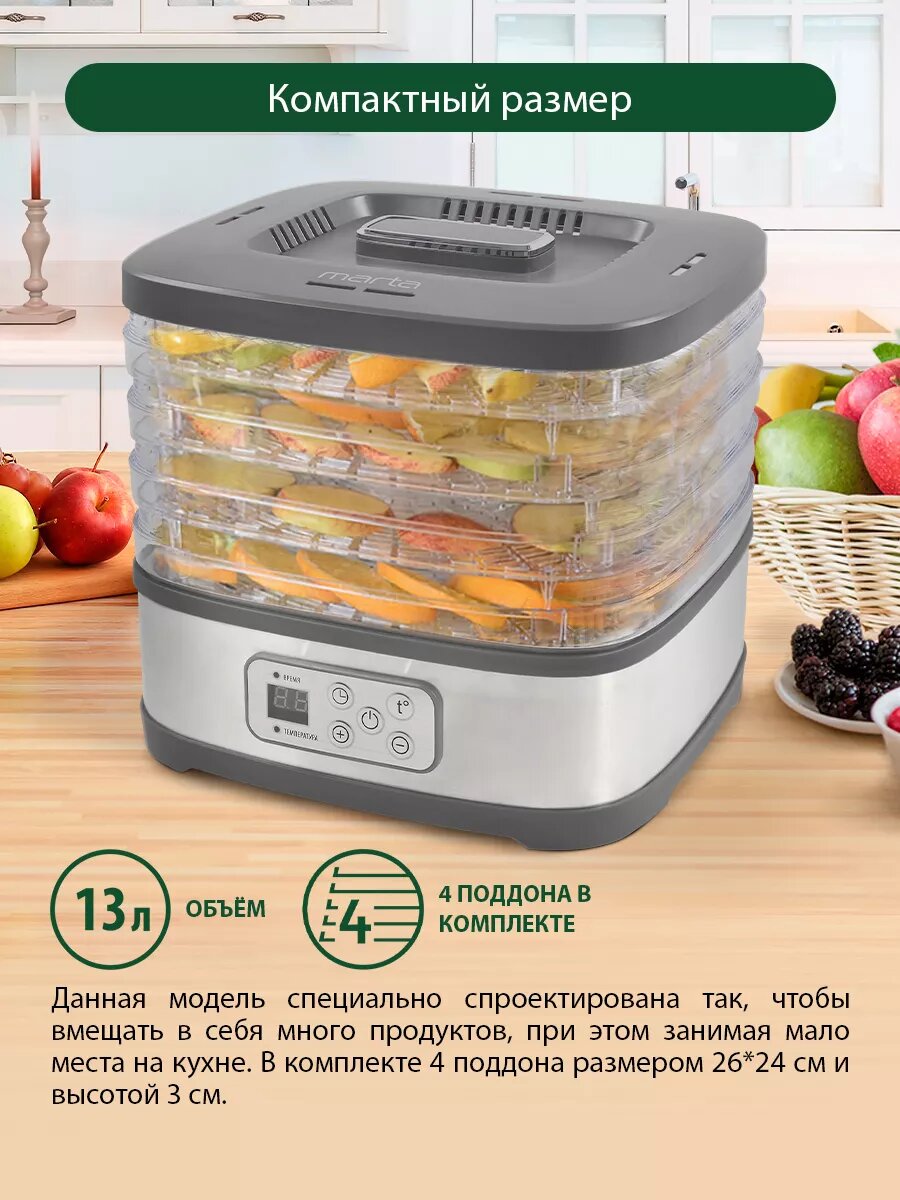 Сушилки фруктов Дегидратор сушилка для овощей электросушилка MARTA MT-1874 4 поддона серый гранит