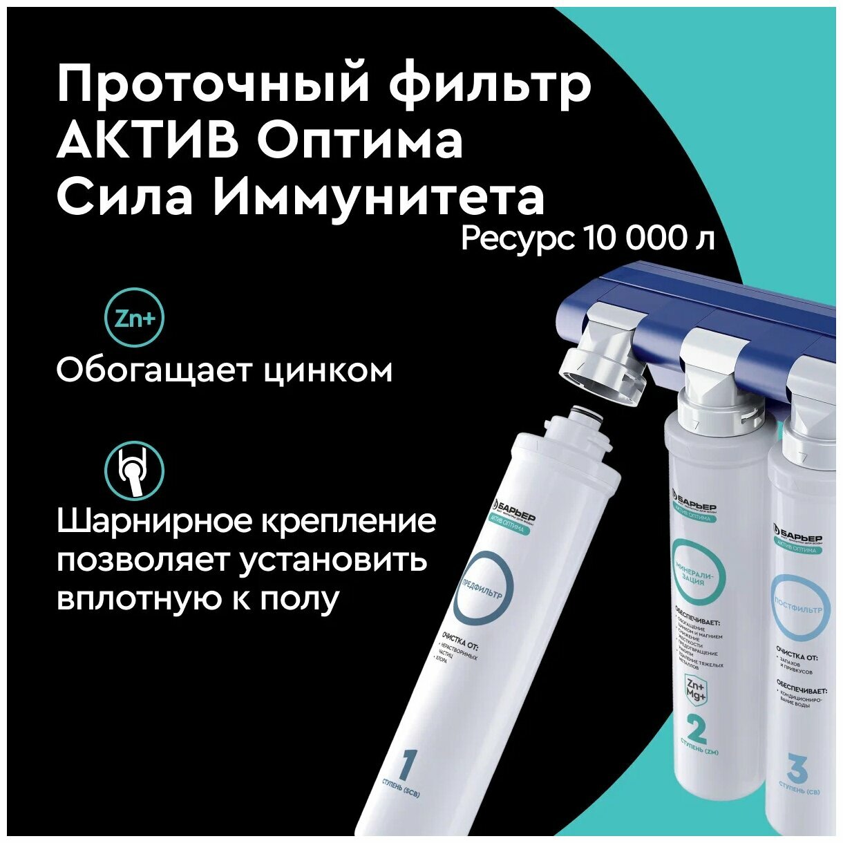 Фильтр под мойку для очистки воды трехступенчатый, быстросъемный БАРЬЕР Актив Оптима Сила Иммунитета, обогащает цинком