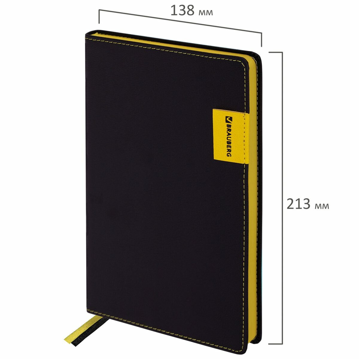 Ежедневник-планер (планинг) / записная книжка / блокнот недатированный А5 (138х213 мм), Brauberg Aim, под кожу, 136 листов, черный, 113421
