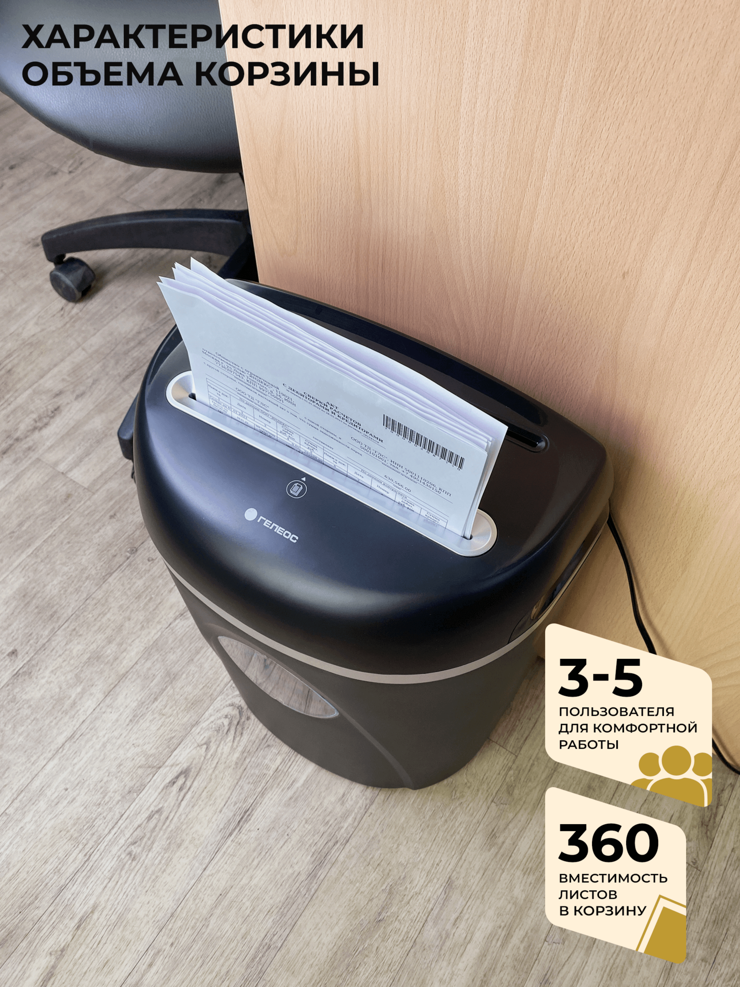 Уничтожитель бумаги Шредер для бумаги гелеос УП23-4, скоростной, корзина 23 л, уровень секретности P-4, размер резки 4,2х38 мм