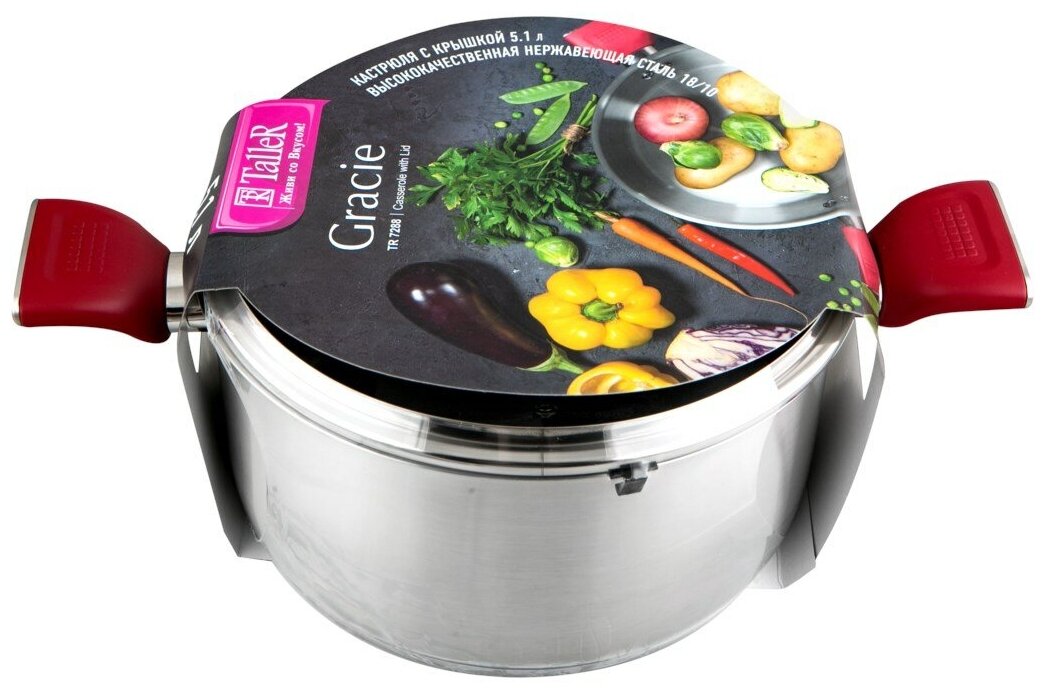 Кастрюля TALLER TR-17288 5,3 л, серебристый/красный