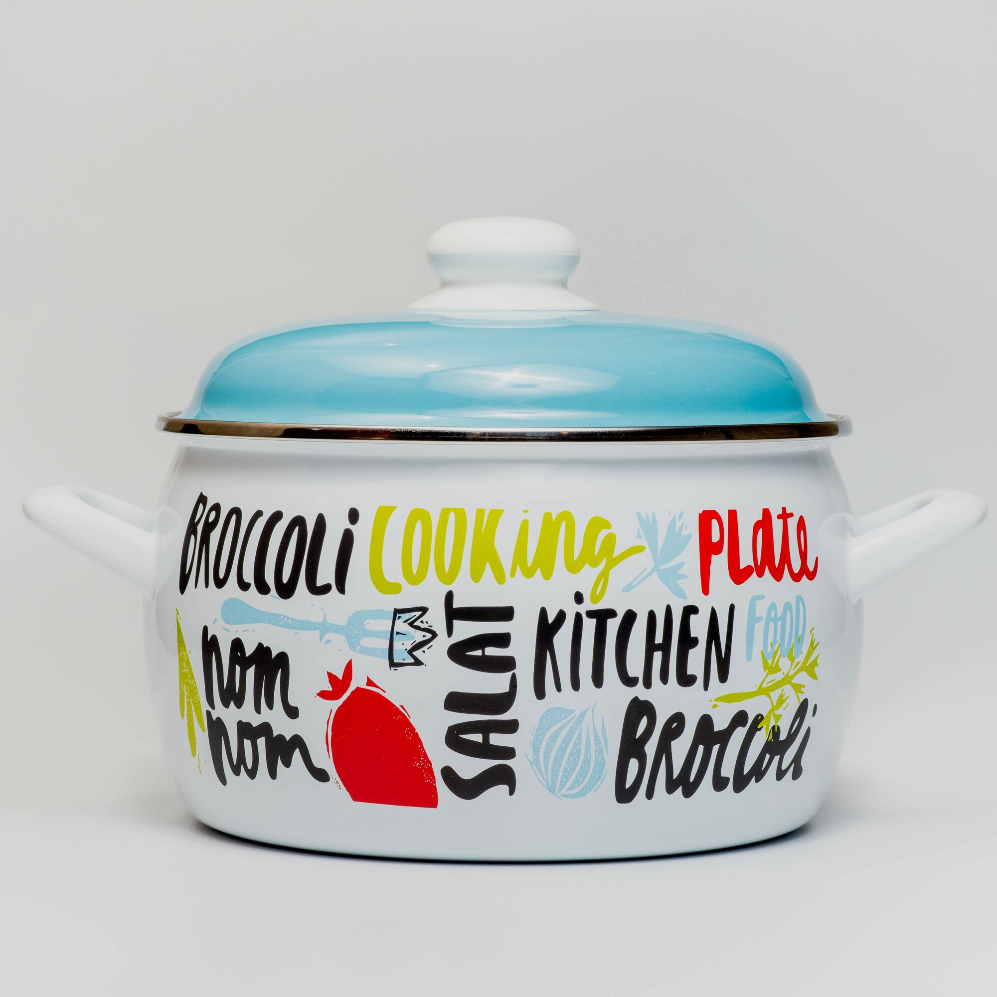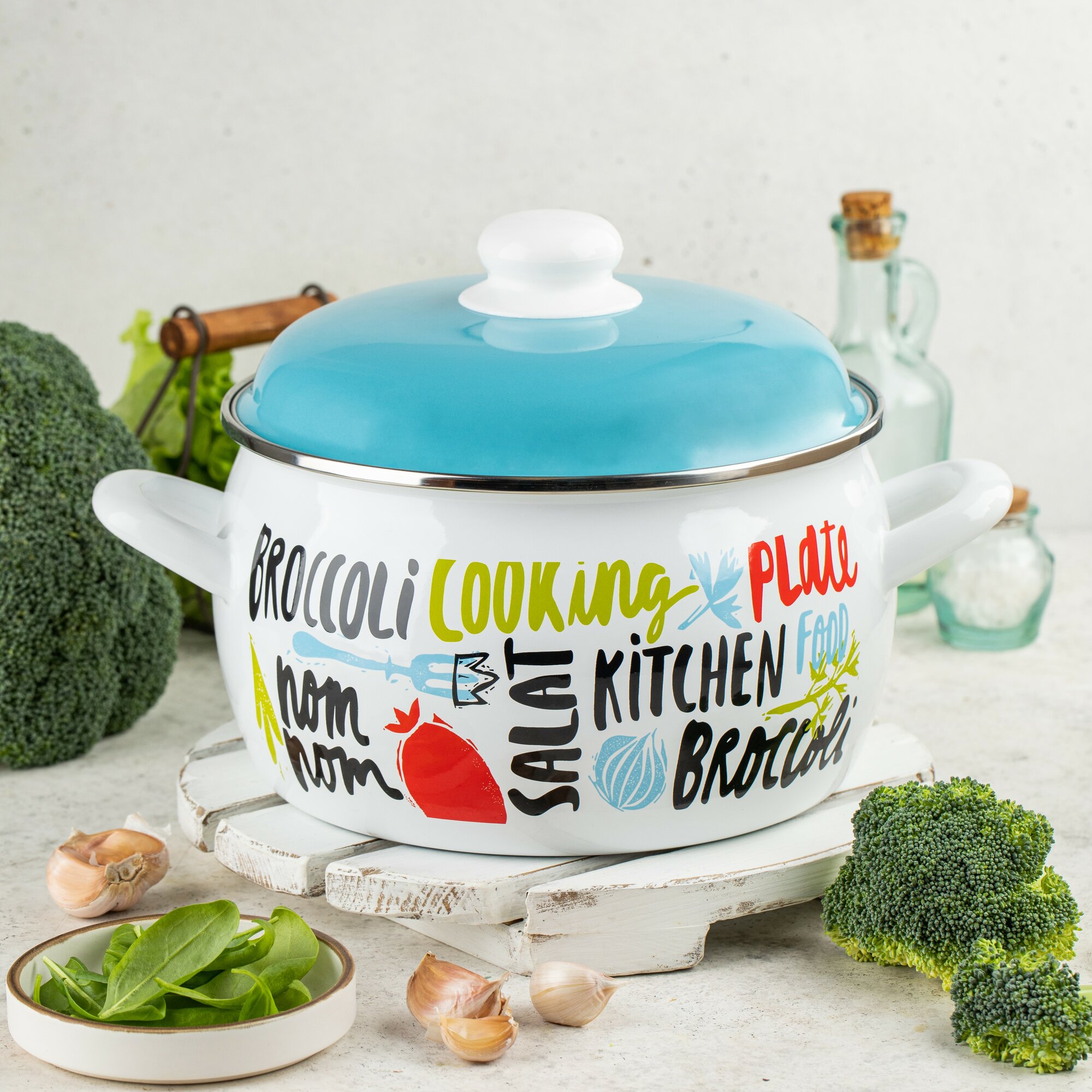 Кастрюля эмалированная с крышкой, Брокколи, METROT, 5,3л, 7349