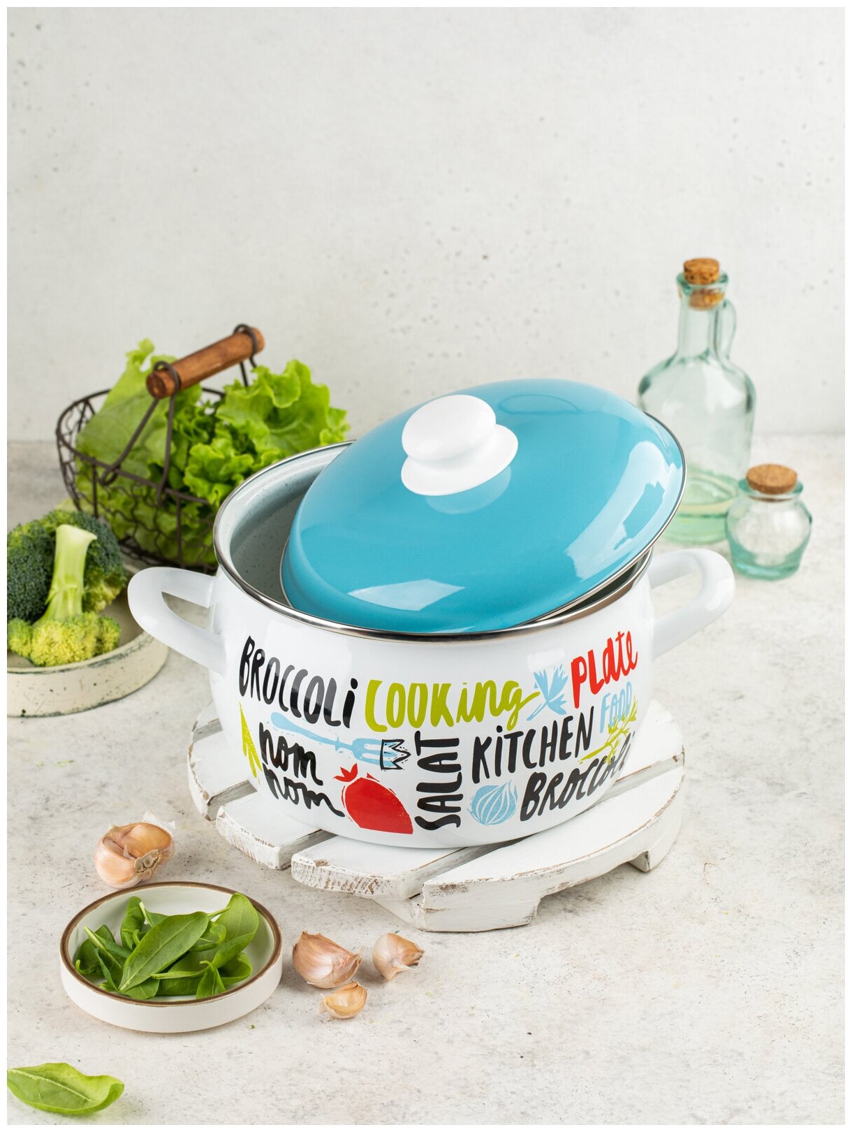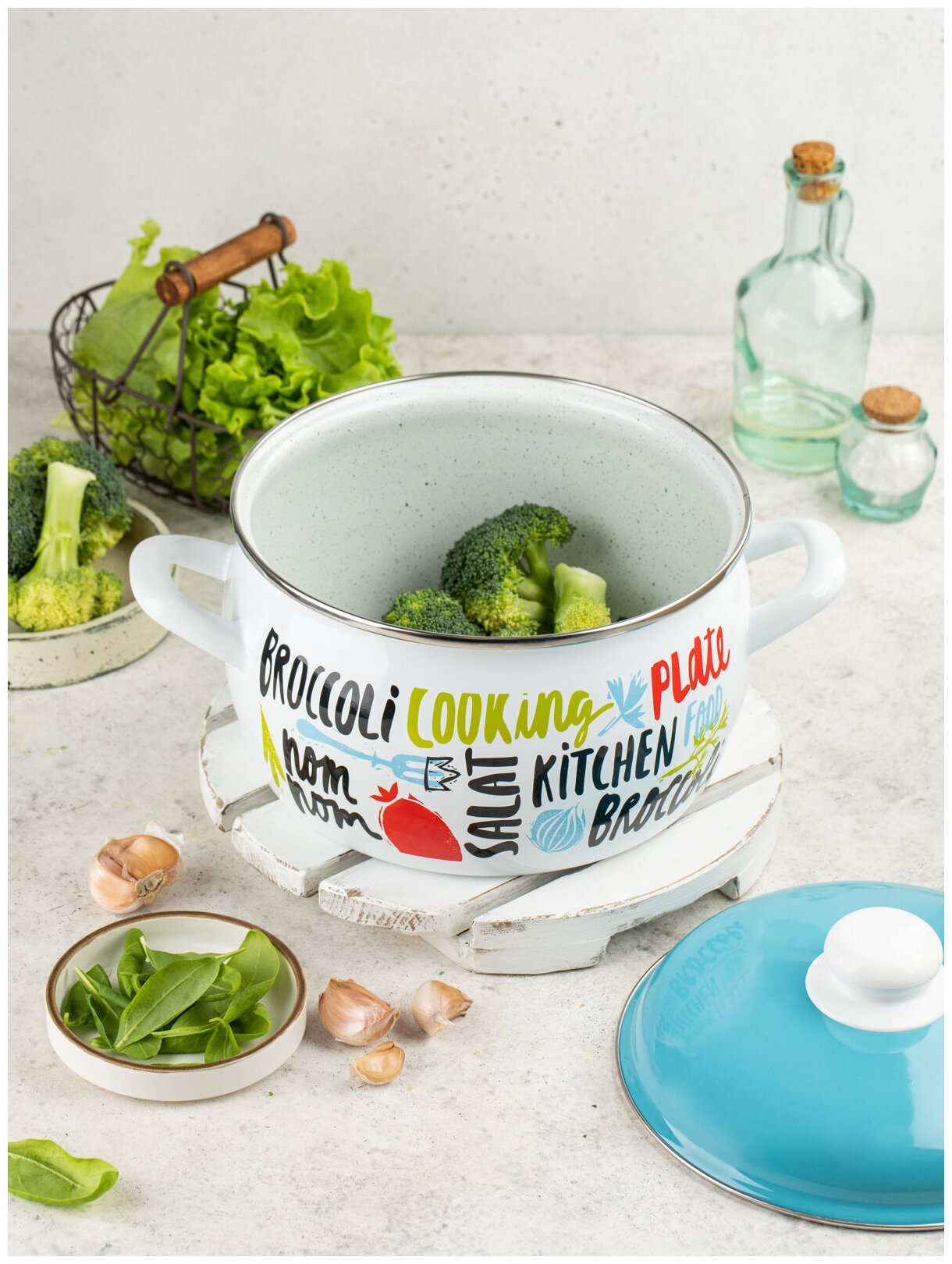 Кастрюля эмалированная с крышкой, Брокколи, METROT, 5,3л, 7349
