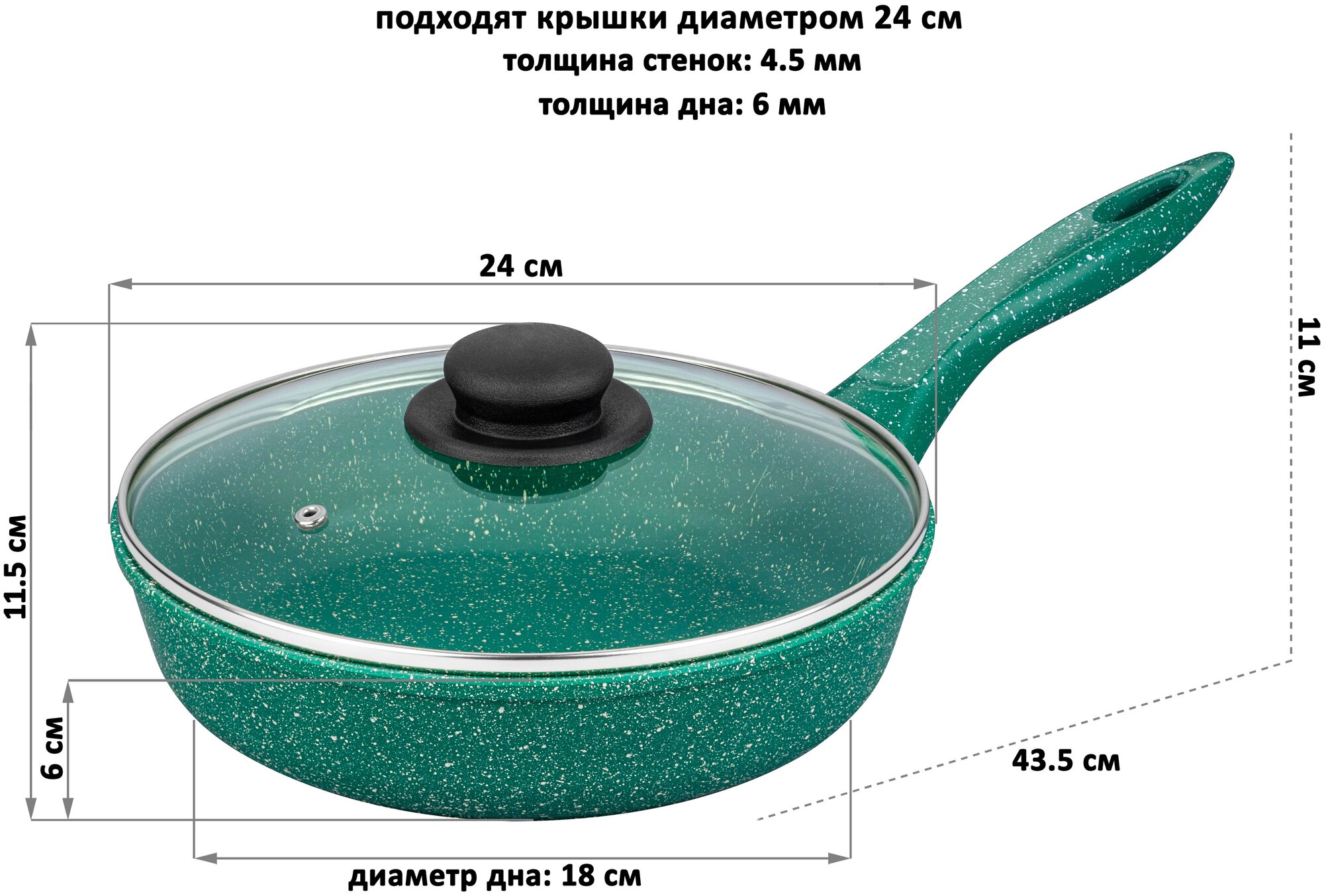 Сковородка Сковорода глубокая 24 см Elan Gallery гармония вкуса Изумруд с крышкой D24, с несъёмной ручкой