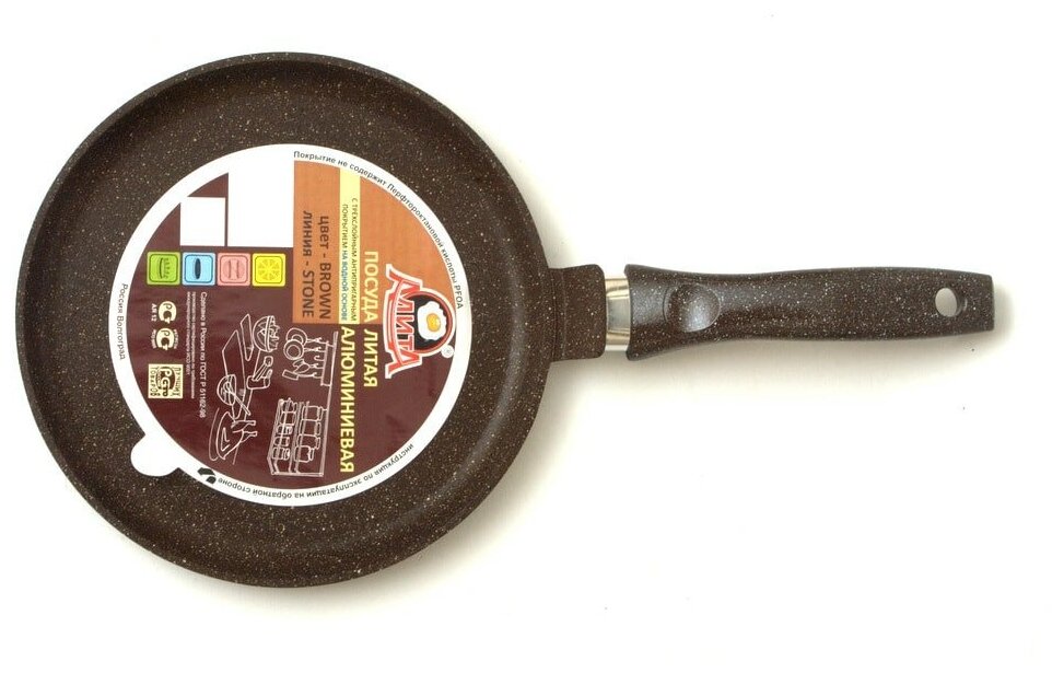 Сковородка Сковорода Алюминий Литой А/П 230 Блинная Коричневый Камень Пл.ручка Утолщенное ДНО (30) Алита 10603