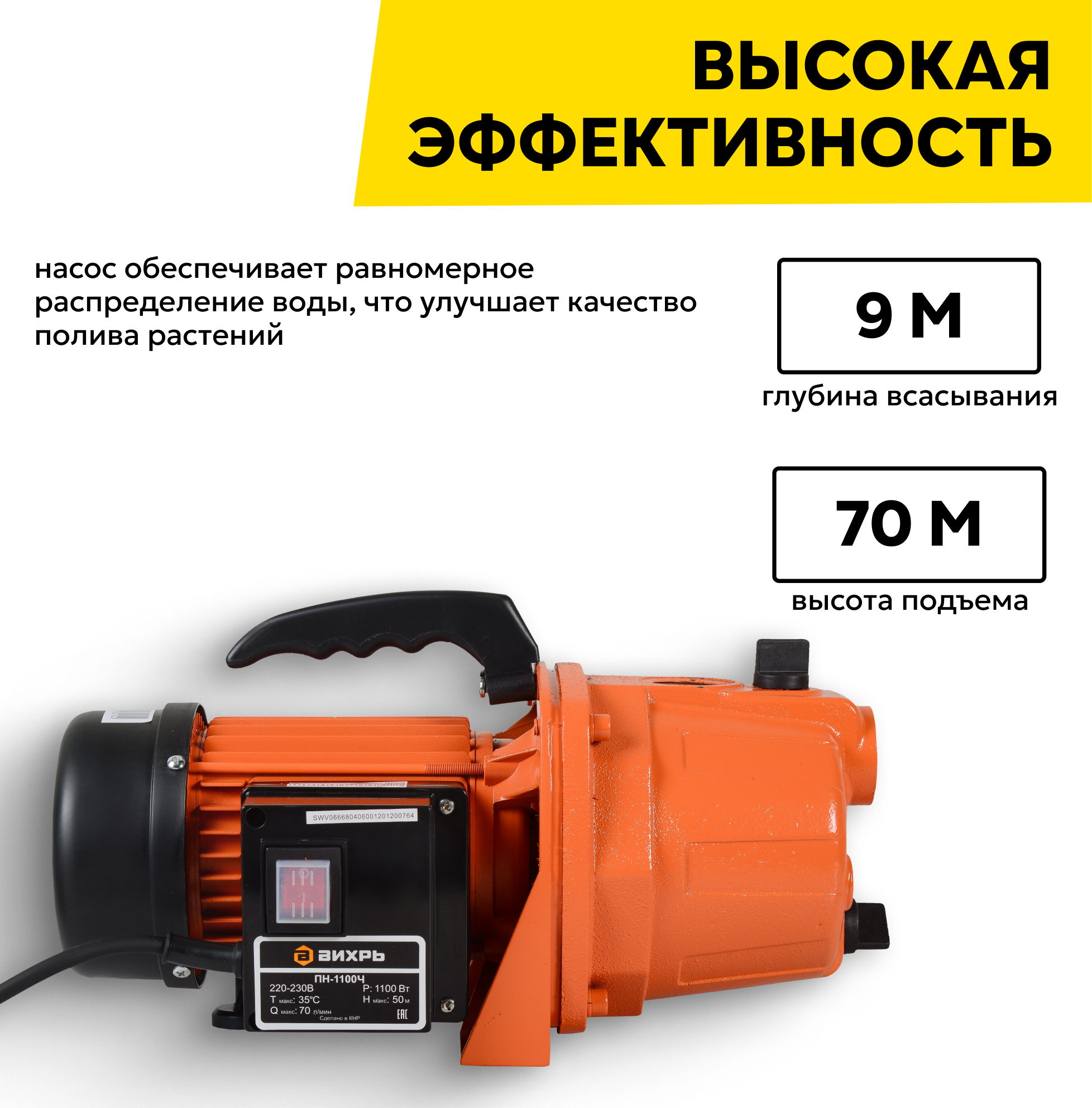 Поверхностные насосы Поверхностный насос вихрь ПН-1100Ч, 1100 Вт, высота подъема – 50 м, 70 л/мин, глубина всасывания – 9 м