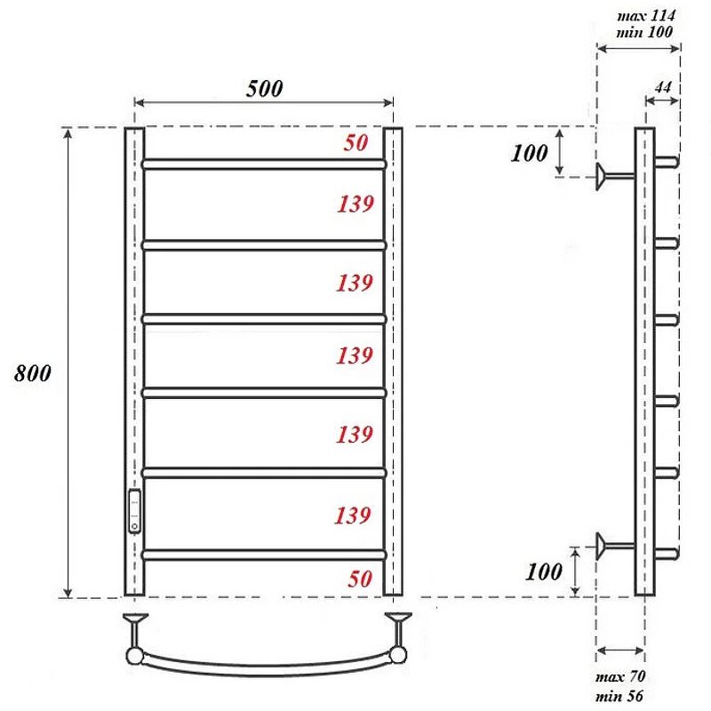 Полотенцесушитель электрический 500x800 POINT Афина (PN04758 П6) диммер слева
