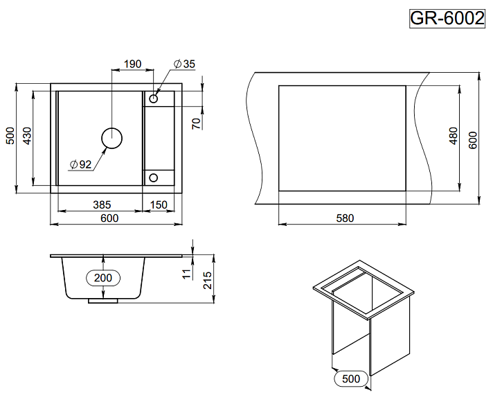 Мойка GRANULA GR-6002 арктик 600х500мм