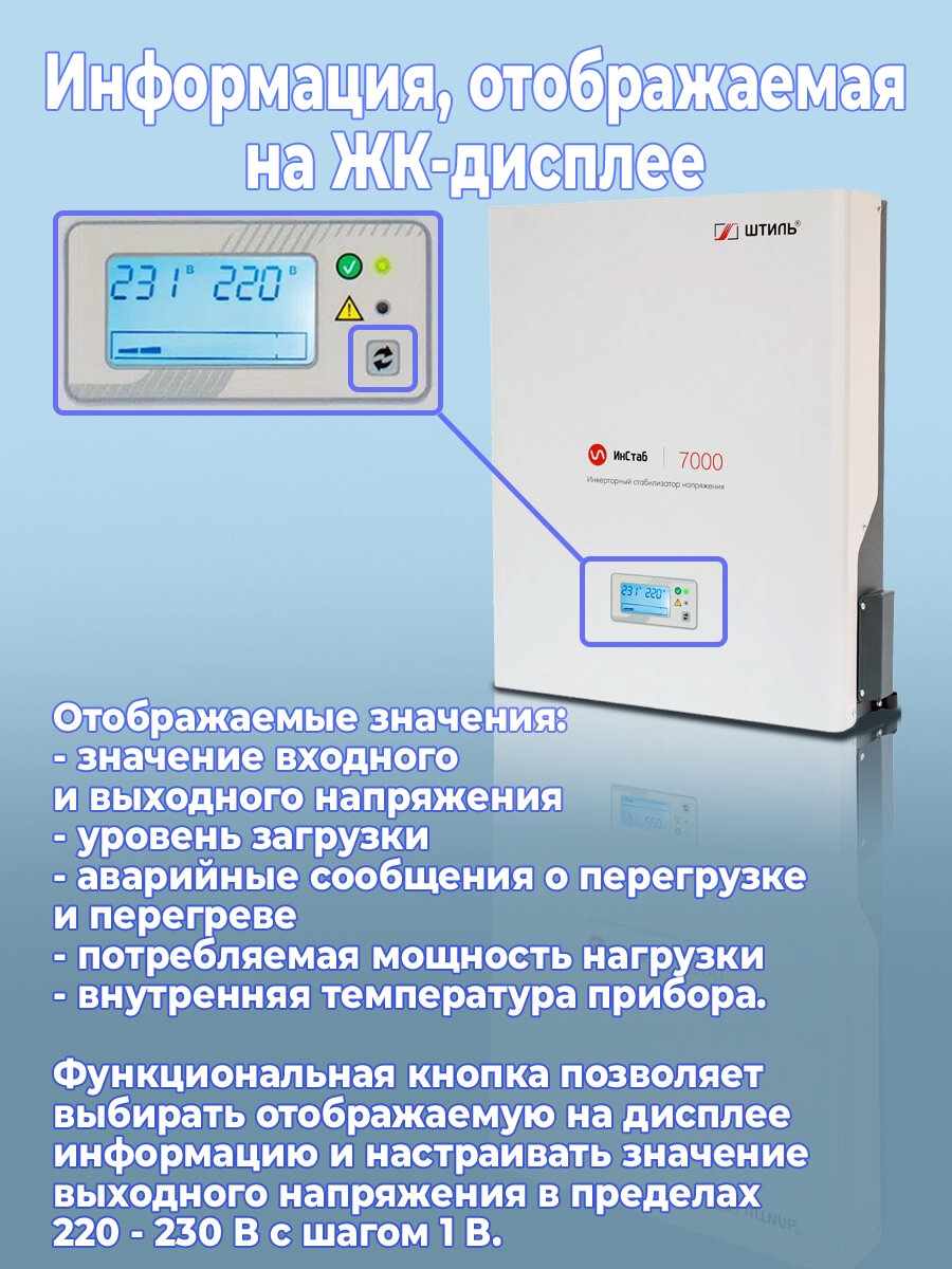 Стабилизаторы напряжения Инверторный стабилизатор напряжения Штиль ИнСтаб IS7000 (220 В - 230 В)