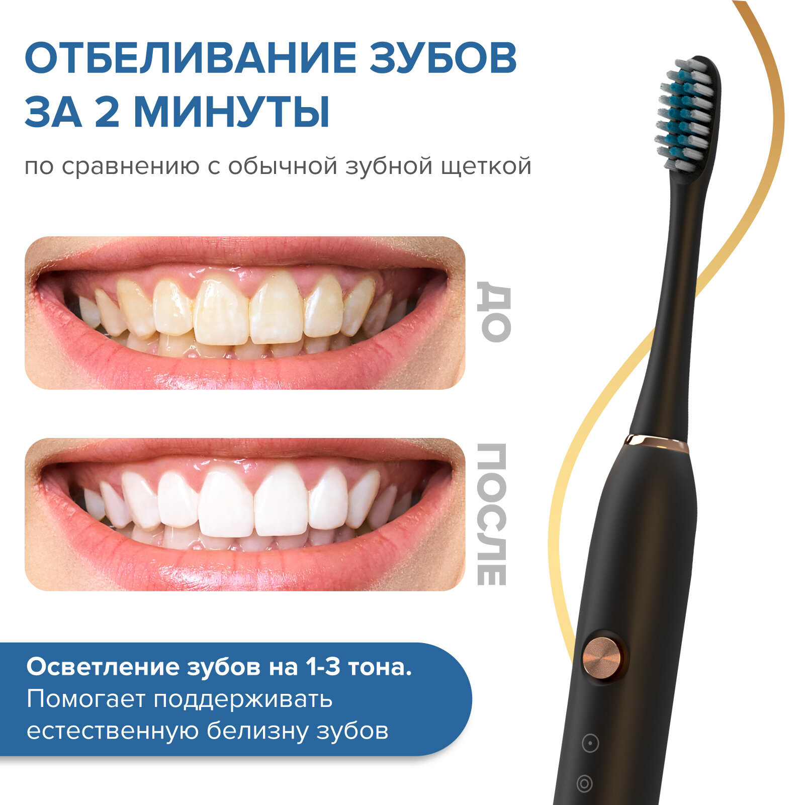 | Режимы | ежедневная чистка (2D) / деликатная чистка / полировка / отбеливание / массаж десен |