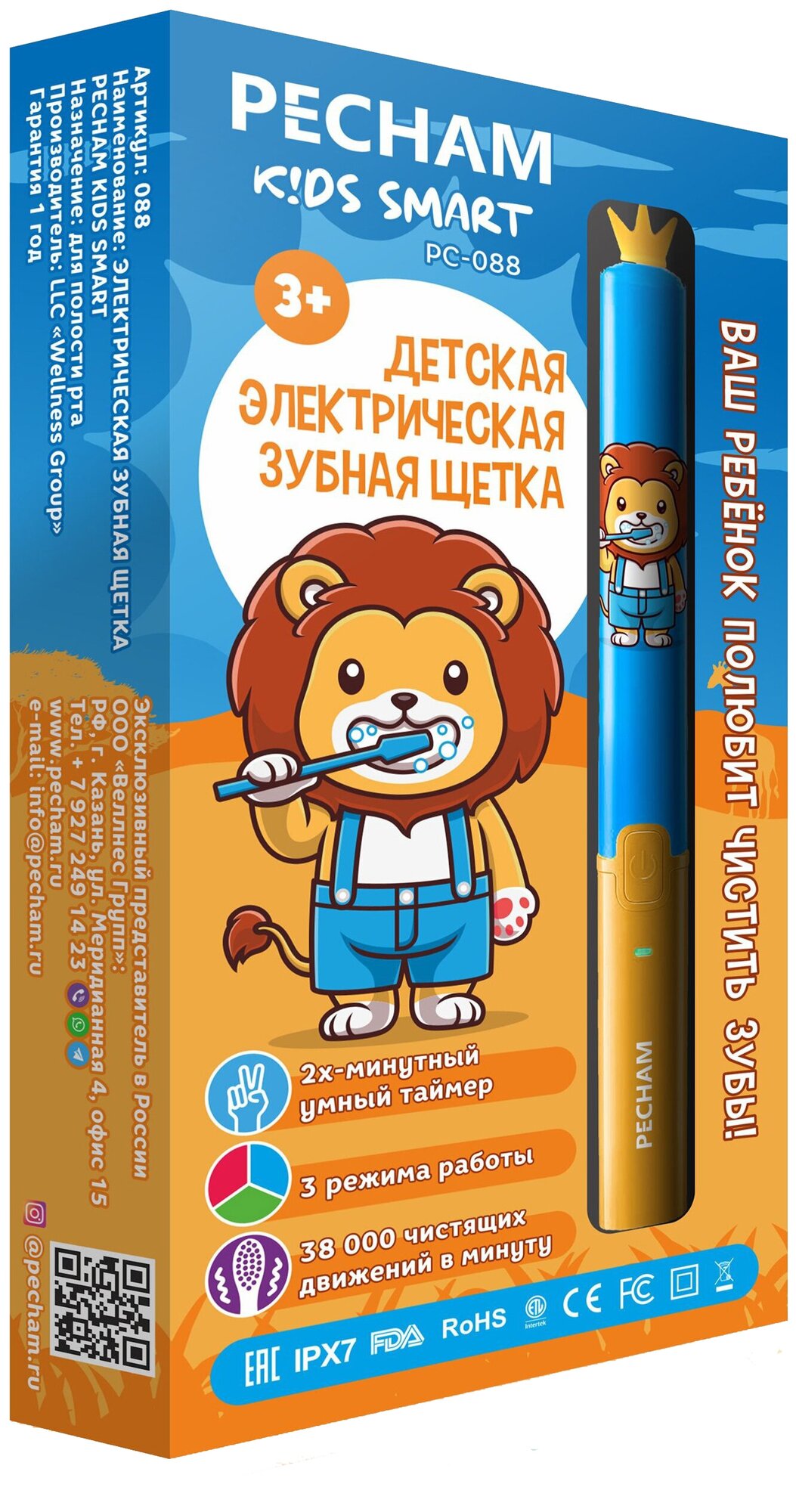 Детская электрическая зубная щетка PECHAM Kids Smart Leo 3+, 2 насадки, Electric toothbrush
