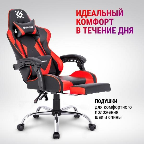 Кресло игровое DEFENDER Pilot Черный/Красный,полиуретан,60мм