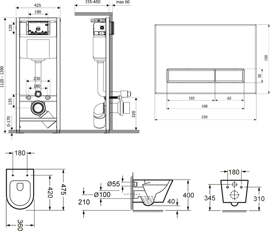 Подвесной унитаз комплект 6 в 1 Lavinia Boho Biore Compacto Rimless 77050170: унитаз, сиденье микролифт, инсталляция, кнопка, шумоизоляция