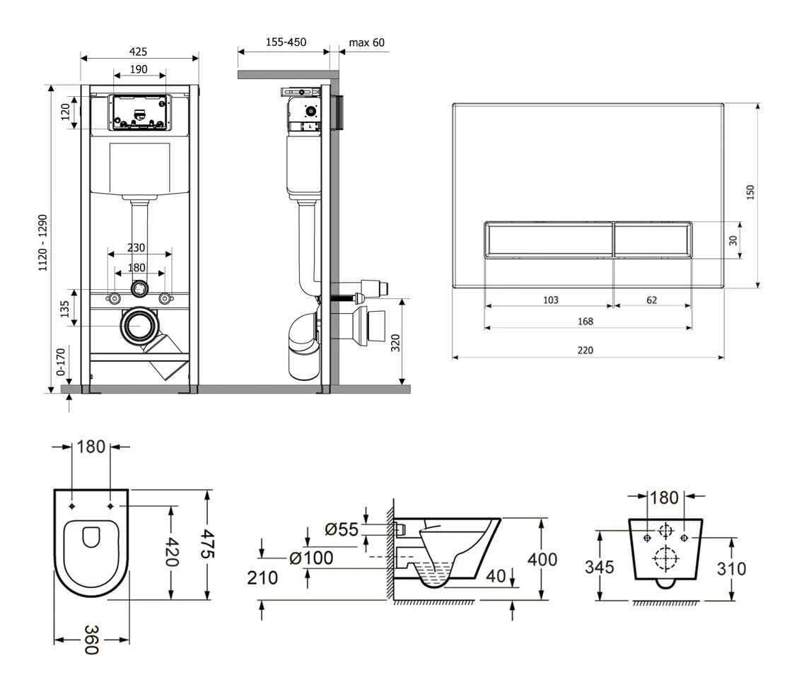 Подвесной унитаз комплект 6 в 1 Lavinia Boho Biore Compacto Rimless 77050170: унитаз, сиденье микролифт, инсталляция, кнопка, шумоизоляция