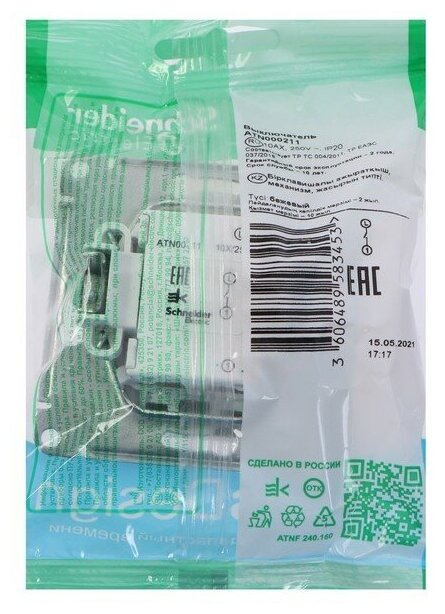 Механизм Atlas Design ATN000451 выключателя 2 кл. с/п жемчуг Schneider Electric 369 ₽ Подробнее