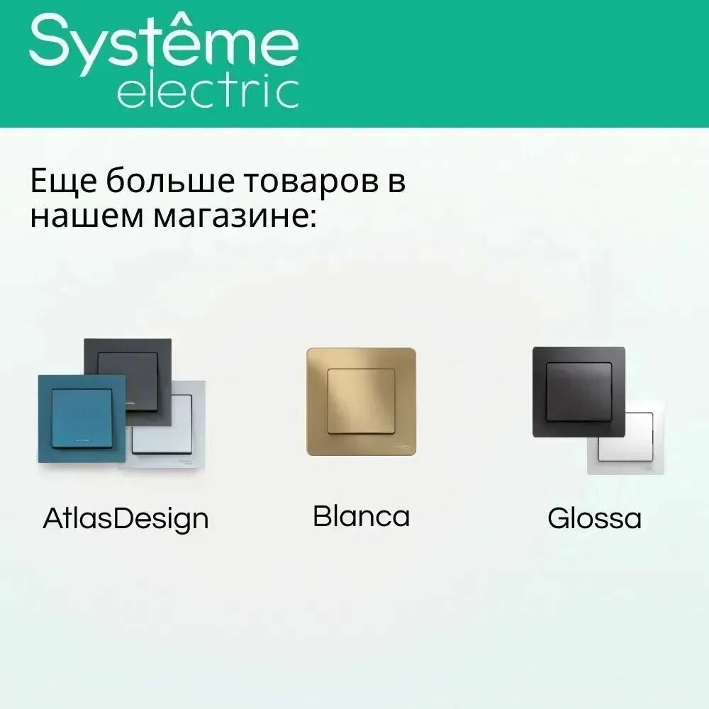 Выключатель электрический Systeme Electric Atlas Design 1-клавишный, 10А, 10 AX, Аквамарин ATN001111 - 10 шт. 4 322 ₽ Подробнее