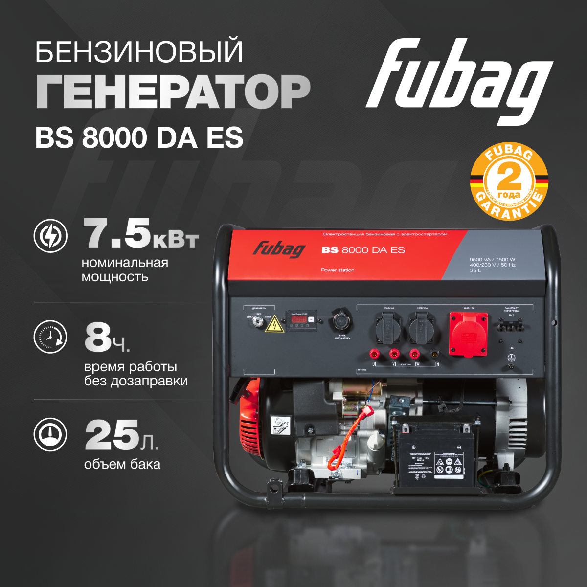 Бензиновый генератор Fubag BS 11000 DA ES, (12500 Вт) 203 130 ₽ Подробнее