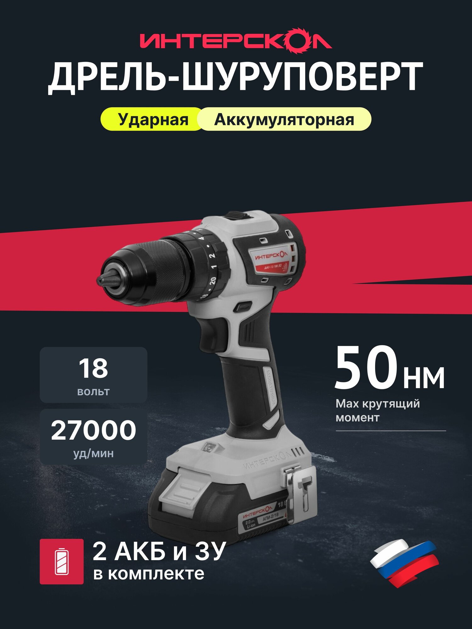 Аккумуляторная ударная дрель-шуруповерт Интерскол ДАУ-13/18В 574.4.1.70
