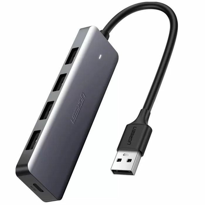 Разветвитель UGREEN USB 3.0 to 4-Port USB 3.0 Hub + Powered by Micro USB, Metal Plated Shell, Ultra Slim CM219 (50985)