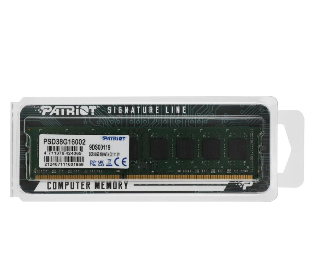 Оперативная память для компьютера Patriot PSD38G16002 DIMM 8Gb DDR3 1600 MHz PSD38G16002