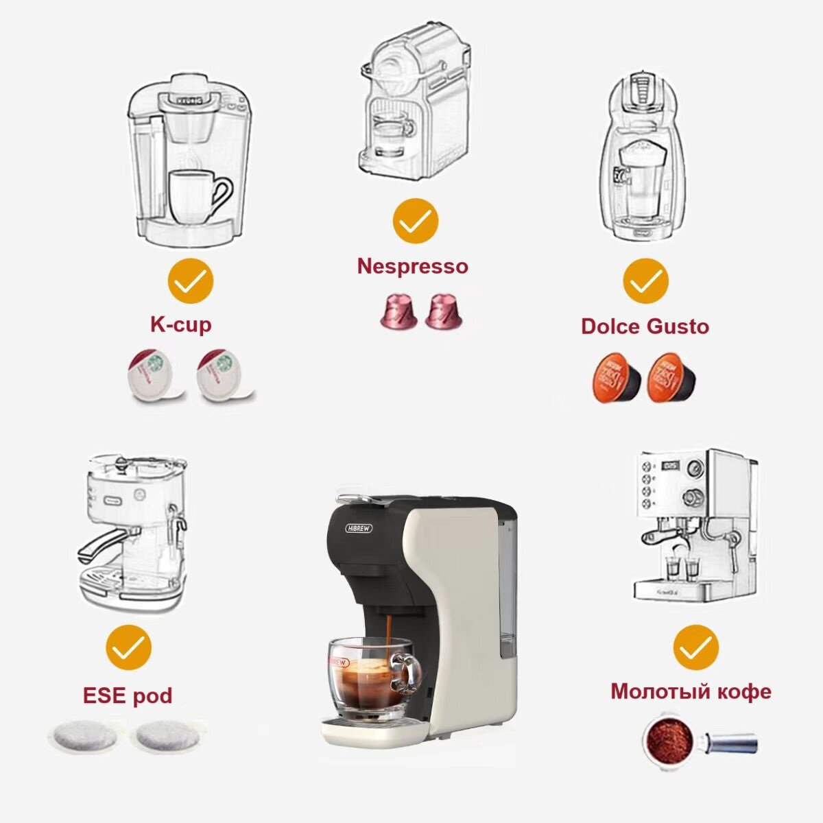 Капсульная кофемашина, Hibrew (ST-504)H1A Белый совместимый Капсулы Nespresso /Капсулы Dolce Gusto/Капсулы Starbucks/Свежемолотый кофе