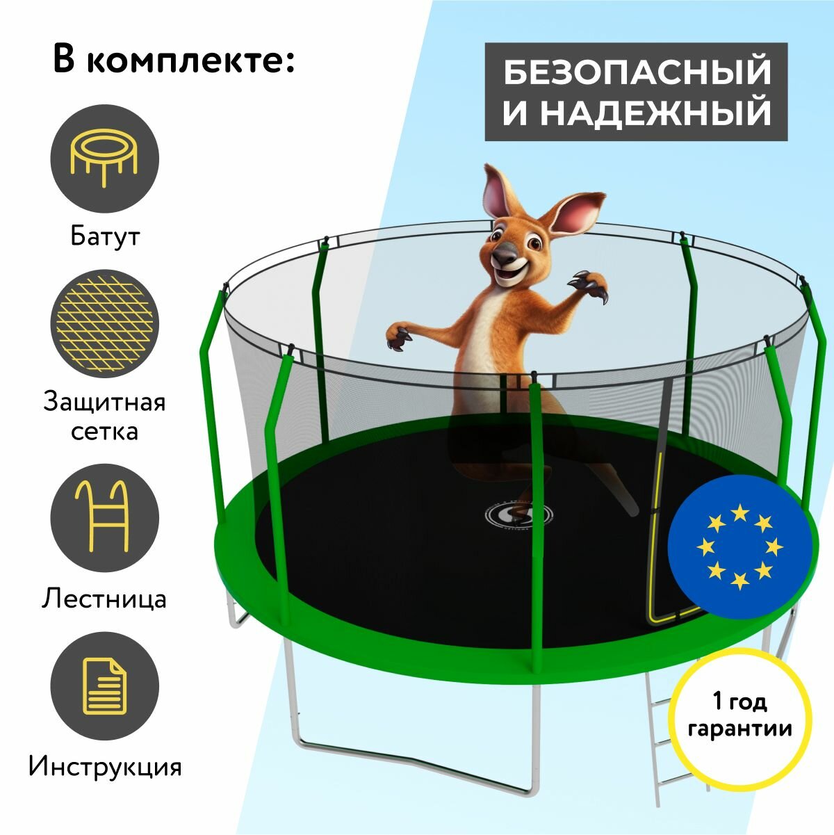Батут SWOLLEN Comfort ZIP 14 FT (427 см) (Green) / каркасный / с защитной сеткой / детский / для детей / уличный / для улицы / для дачи / для взрослых / большой / спортивный / для дома
