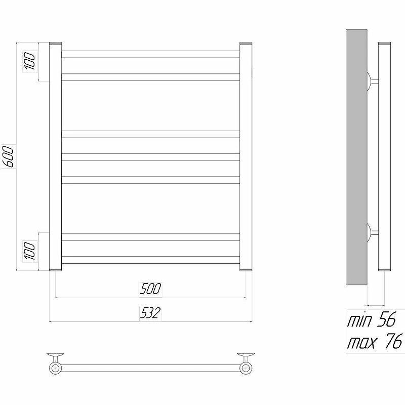 Полотенцесушитель водяной LEMARK URSUS LM72607 500*600, нержавеющая сталь, хром