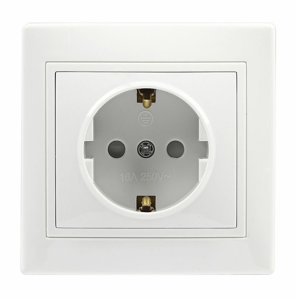 Розетка Smartbuy 1-местная с заземлением 16А белая с защитными шторками Венера SBE-01w-16-S1-1Z