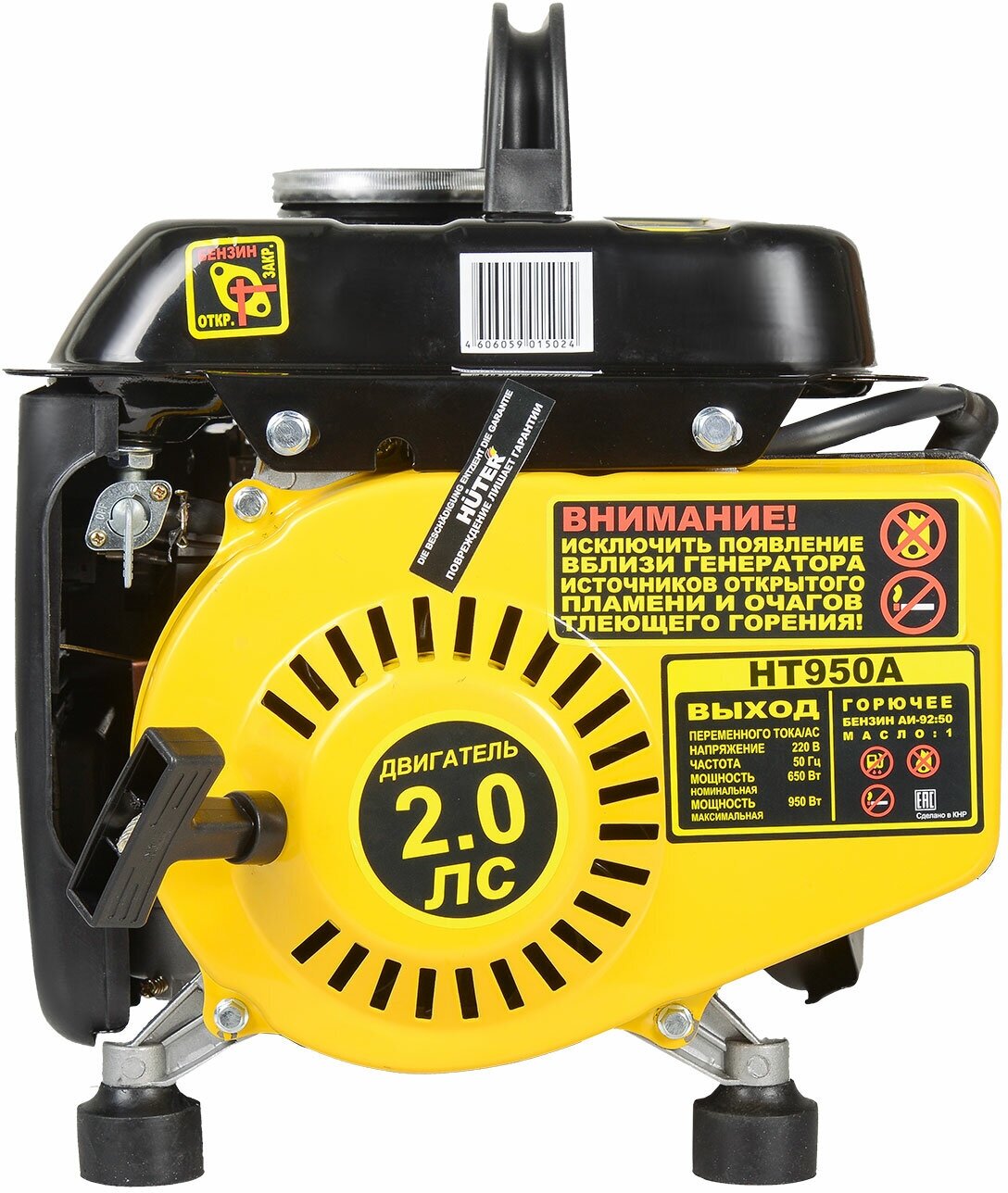 Бензиновый генератор HUTER HT950A с ручным стартером, мощность 950 Вт