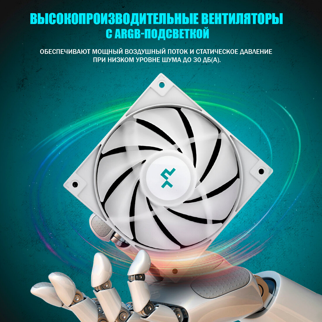 Комплект водяного охлаждения DEEPCOOL LS520 WH LGA20XX/1700/1200/115X/AM5/AM4 (TDP 250W, ARGB Lighting, Anti-Leak edition, PWM, DUAL FAN, белый) RET