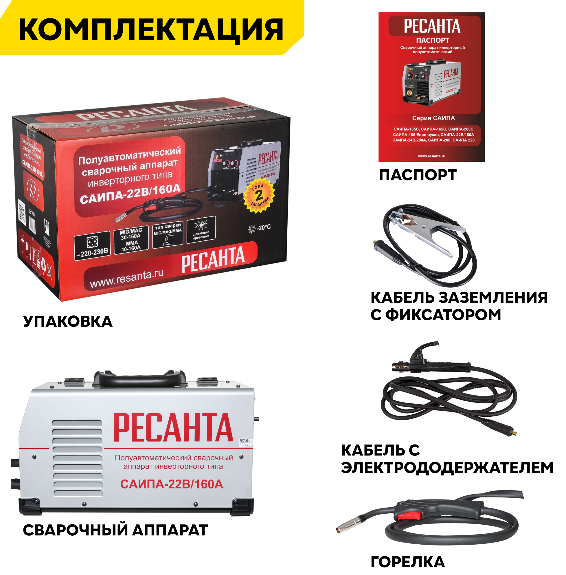 Сварочный полуавтомат Ресанта САИПА-22В/160А (MIG/MAG), 65/109