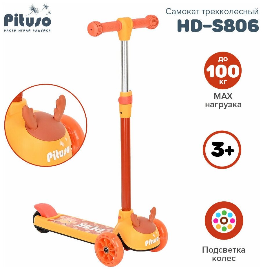 Самокаты Самокат трехколесный детский Pituso HD-S806, регулировка высоты руля, светящиеся колеса, цвет оранжевый