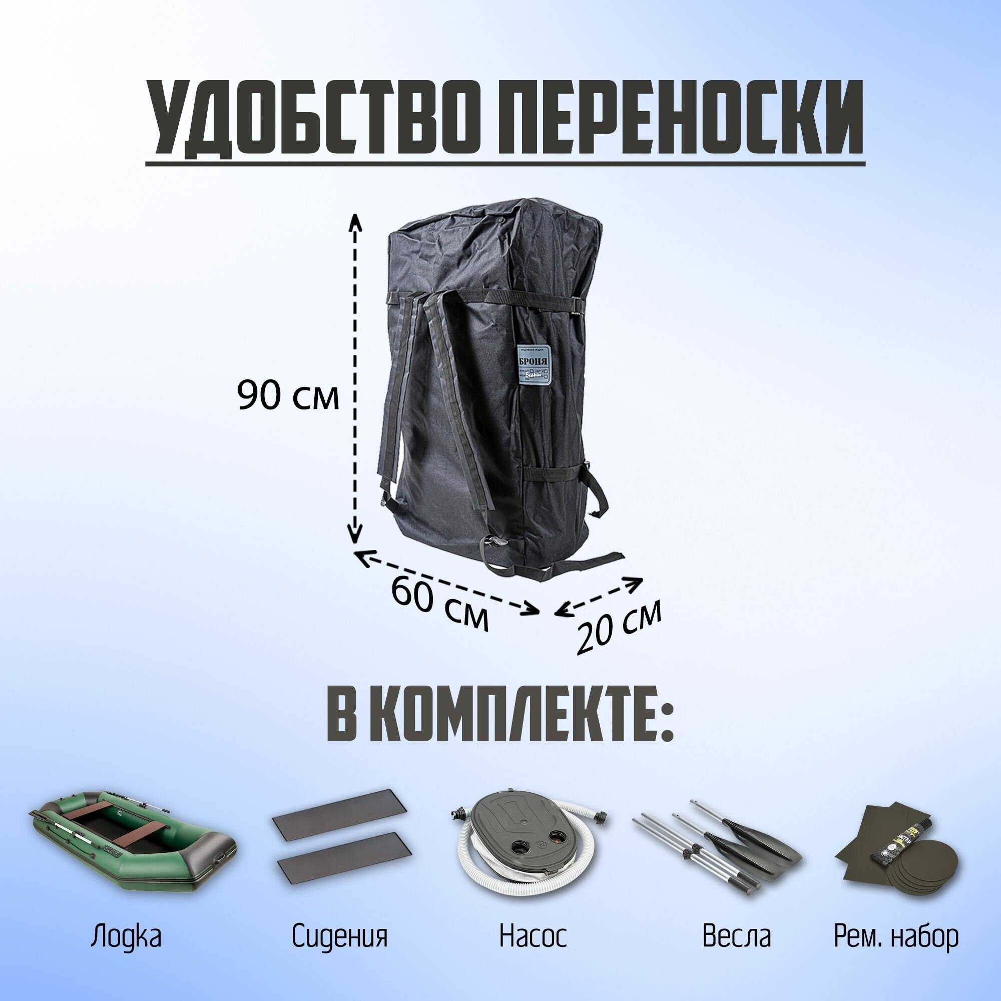 Лодка Моторно-гребная Броня-280М, 2 отсека, до 300 кг, 2-местная, Клееные швы