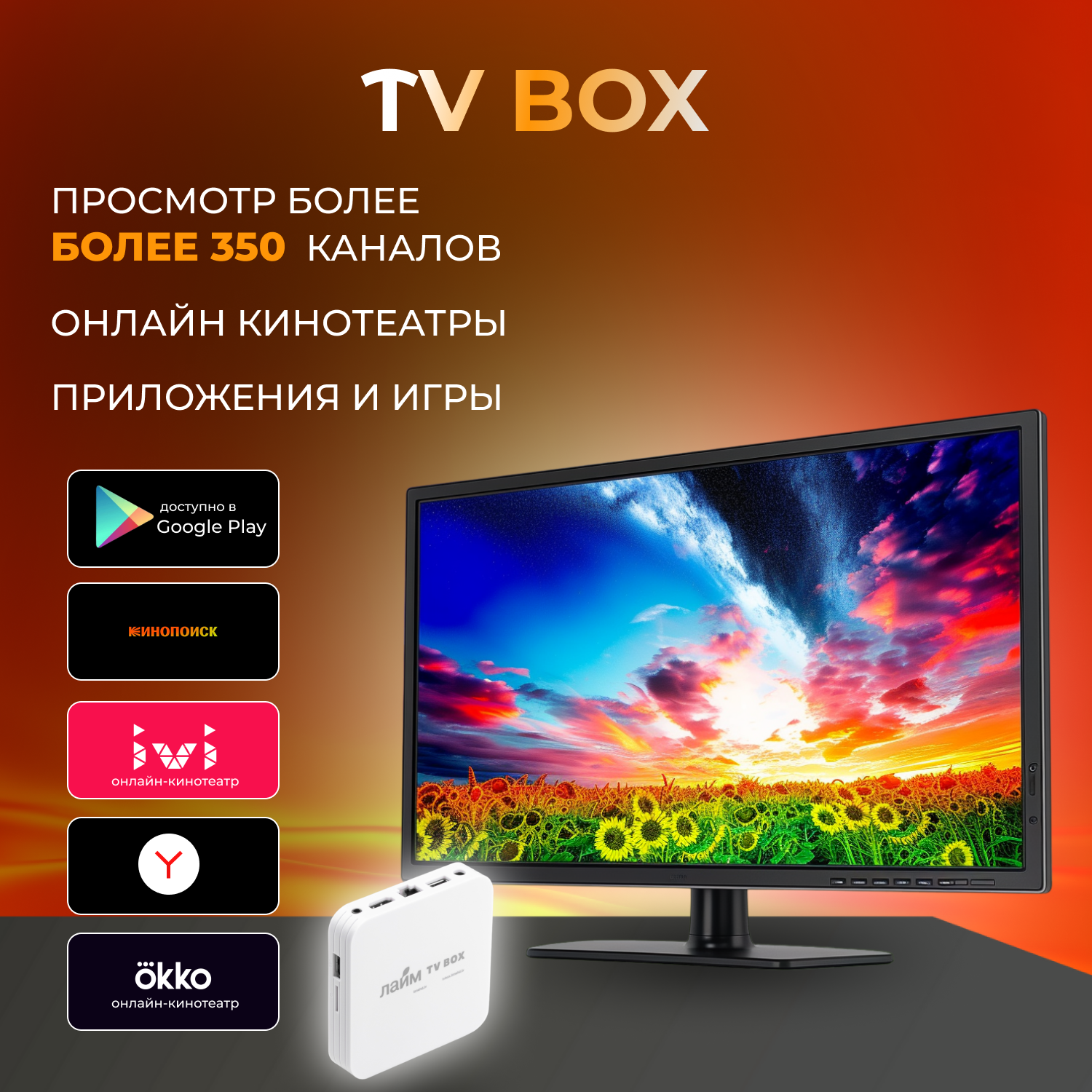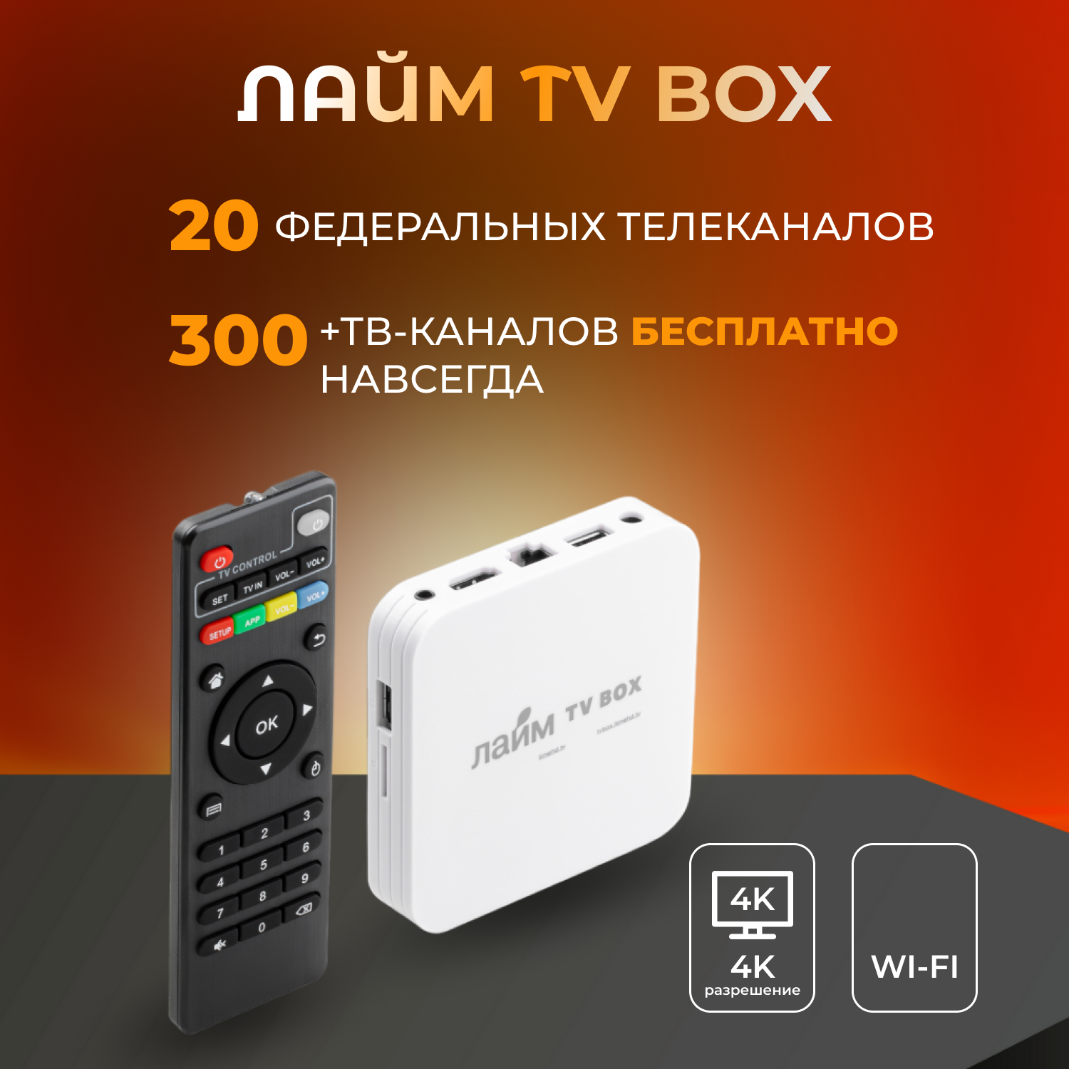 Лайм TV Box BVH / Андроид ТВ приставка c WI FI/ 4К / Смарт ТВ / Медиаплеер/ + 300 ТВ-каналов бесплатно /приставка для цифрового тв