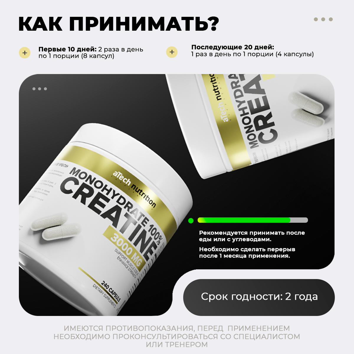 Креатин Моногидрат 100% aTech Nutrition, 240 капсул