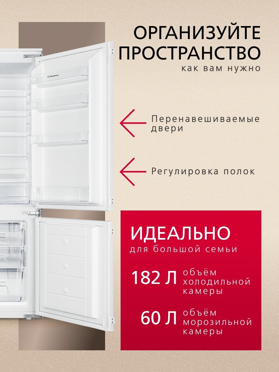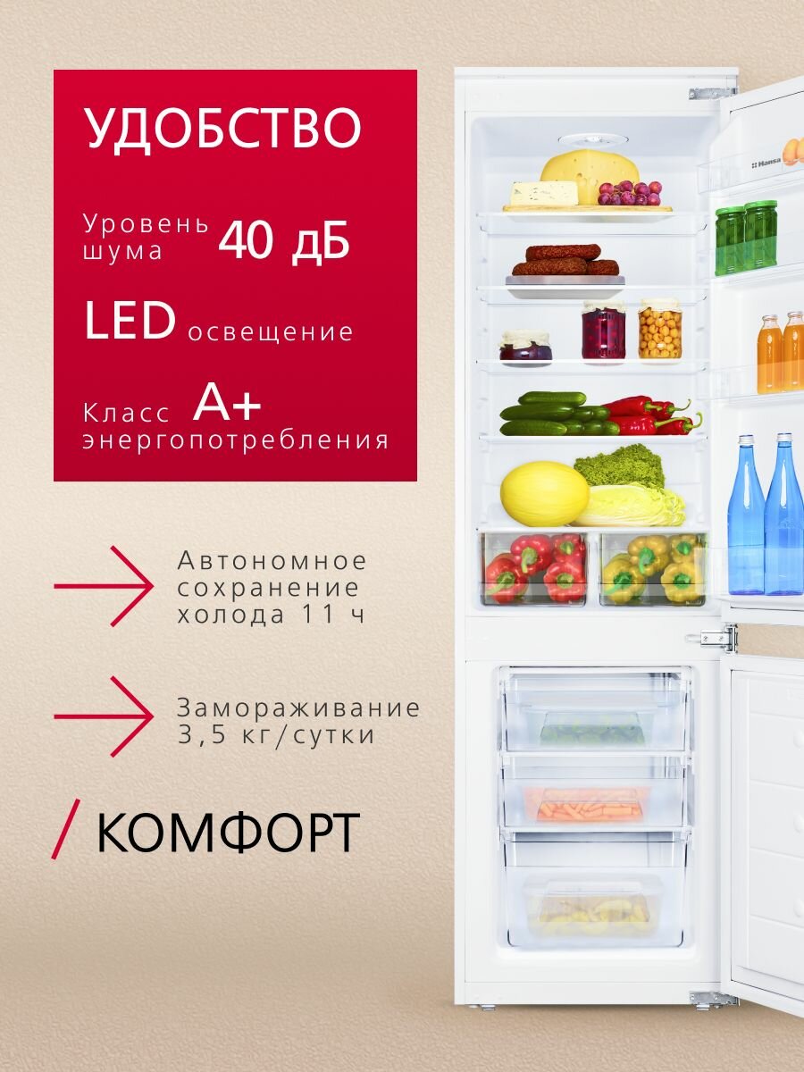 Встраиваемый холодильник Hansa BK315.3 двухкамерный, объем 272 литра, LED подсветка, автономное сохранение холода 67 990 ₽ Подробнее