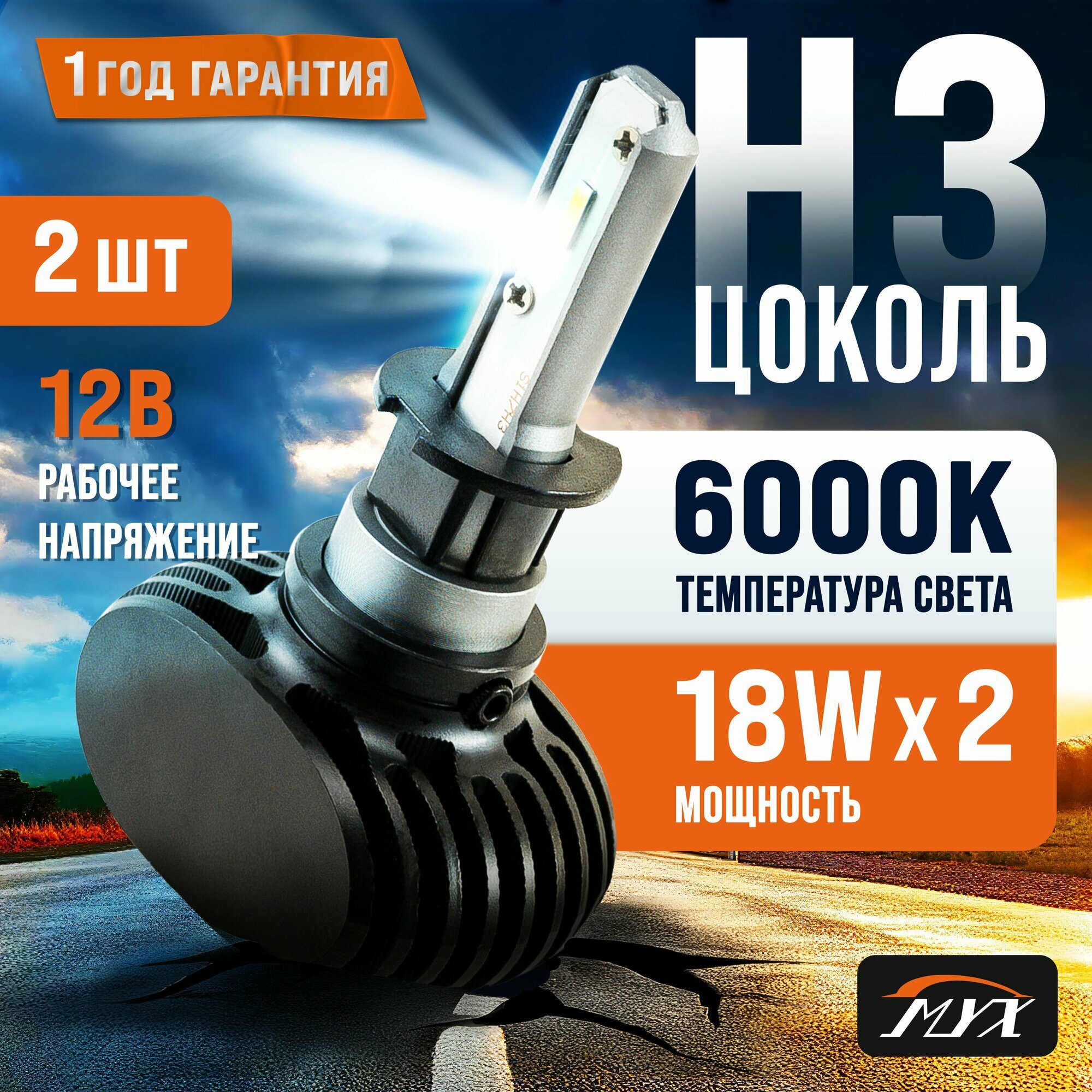 Автолампы Светодиодные лампы для автомобиля MYX S1 цоколь H3 с напряжением 12V Led лампы в авто фары комплект 2шт.