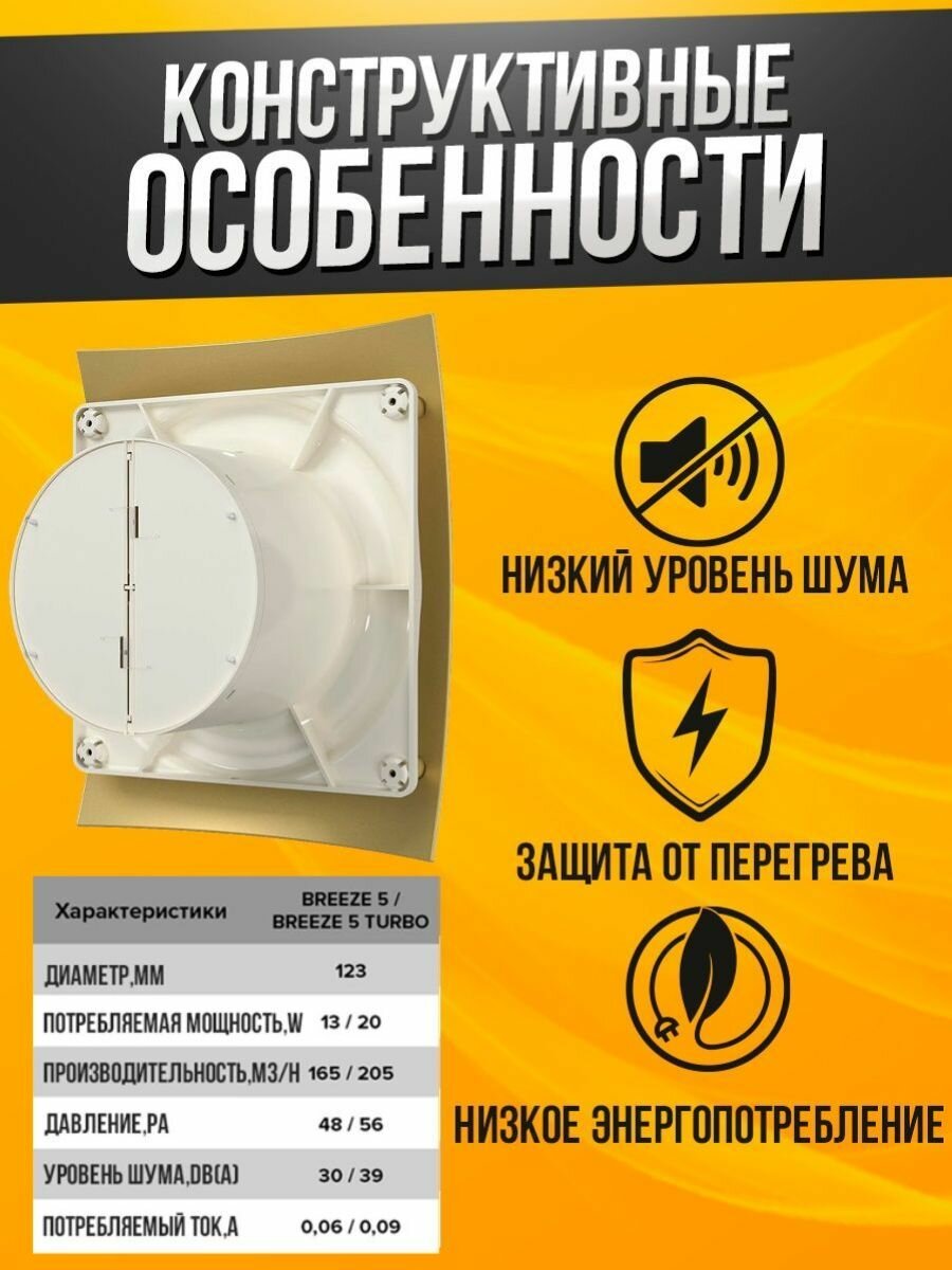 Вытяжной вентилятор Вентилятор вытяжной бытовой Breeze 5C Champagne с обратным клапаном для ванны туалета кухни