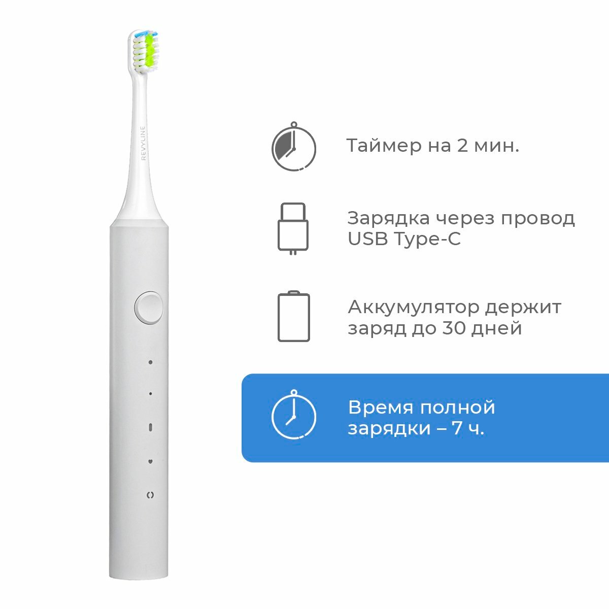 Электрическая зубная щетка Электрическая звуковая щетка Revyline RL 040 белая
