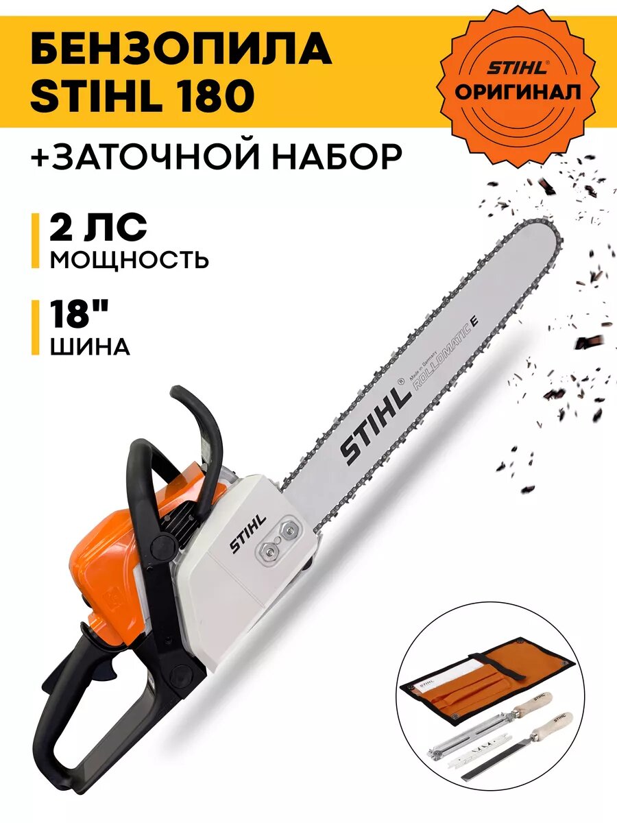 Бензопила цепная пила STIHL (Штиль) оригинал MS 180 шина R 35 см цепь PD 3 садовая пила мс техника для дачи, сада и строительства