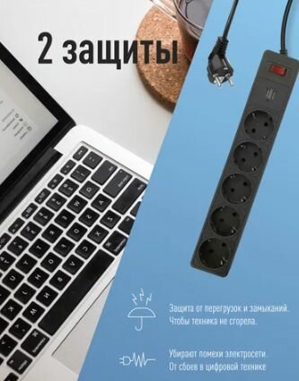 Сетевой фильтр 1,5 метра с предохранителем 2200 Вт 220В, белый космос 480 ₽ Подробнее
