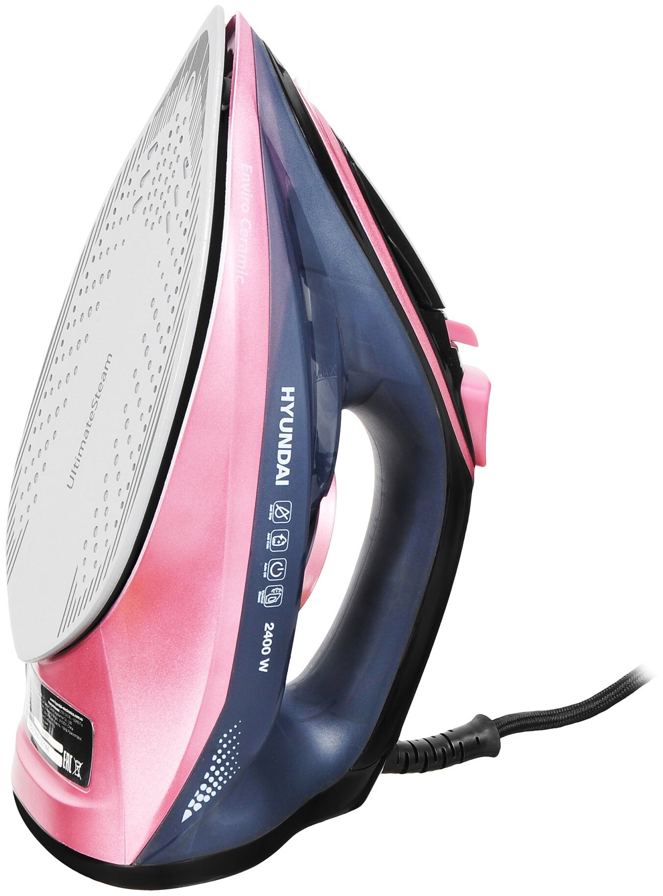 Утюг Hyundai H-SI01623 [2400 Вт, подошва - Enviro Ceramic керамика, пар: 20 г/мин, пар.удар: 160 г/мин, AutoOff, 250 мл, 2 м, черный/розовый]