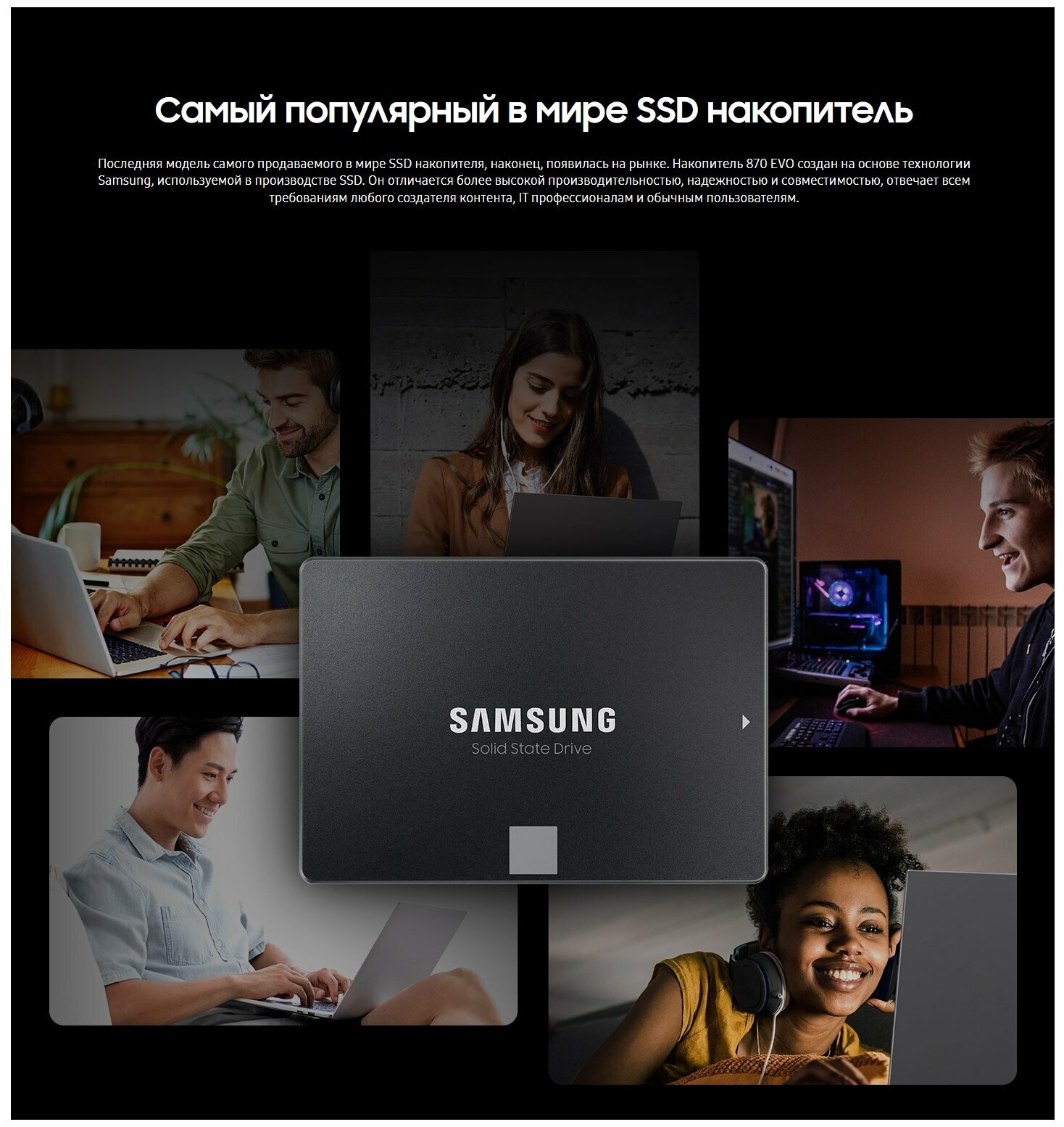 Накопитель SSD Samsung 870 EVO MZ-77E500BW/SATA III/500GB /Скорость чтения 560МБайт/с Скорость записи 530МБайт/с 6 964 ₽ Подробнее